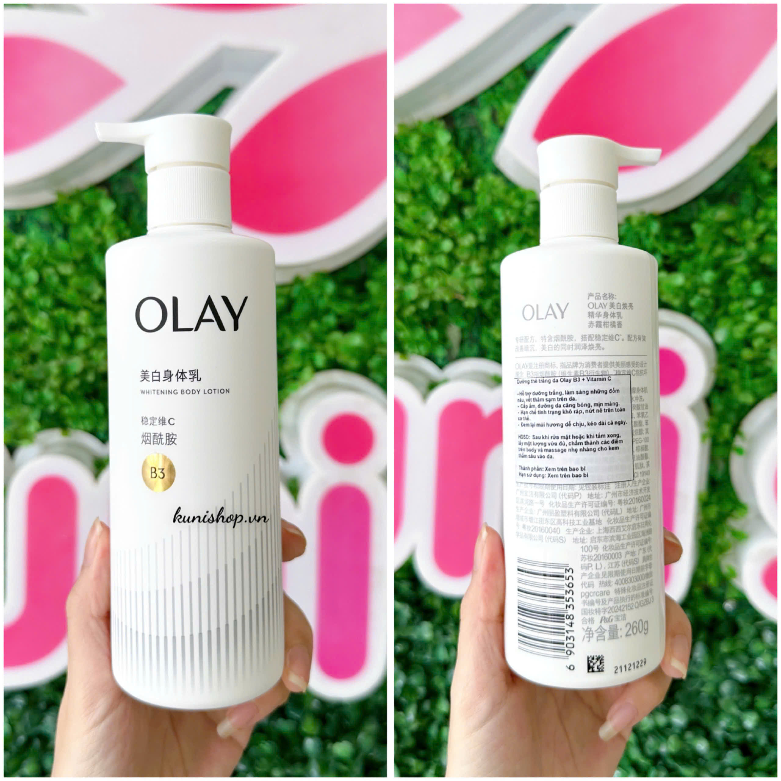 Olay dưỡng trắng nhờ sự kết hợp của Nicotinamide (B3) 3.5% và Vitamin C. Phải nói Olay là hãng duy nhất trong tầm giá bình dân có nồng độ nicotinamide cao.