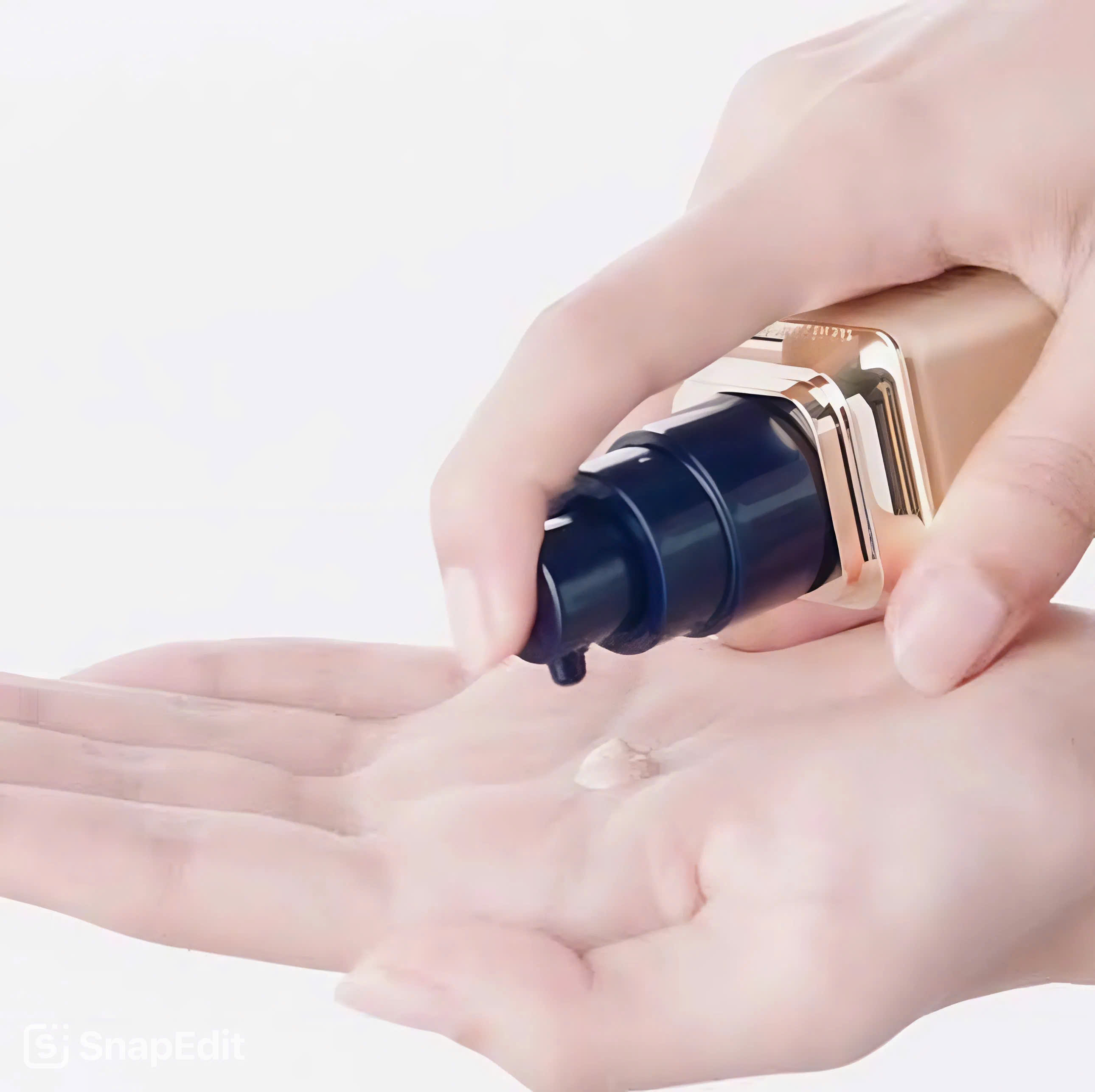 Lắc chai nhiều lần khi đóng nắp. Bơm một lần lên ngón tay hoặc lên mu bàn tay. Thoa kem nền lên năm điểm (trán, mũi, cằm và hai bên má) trên mặt.