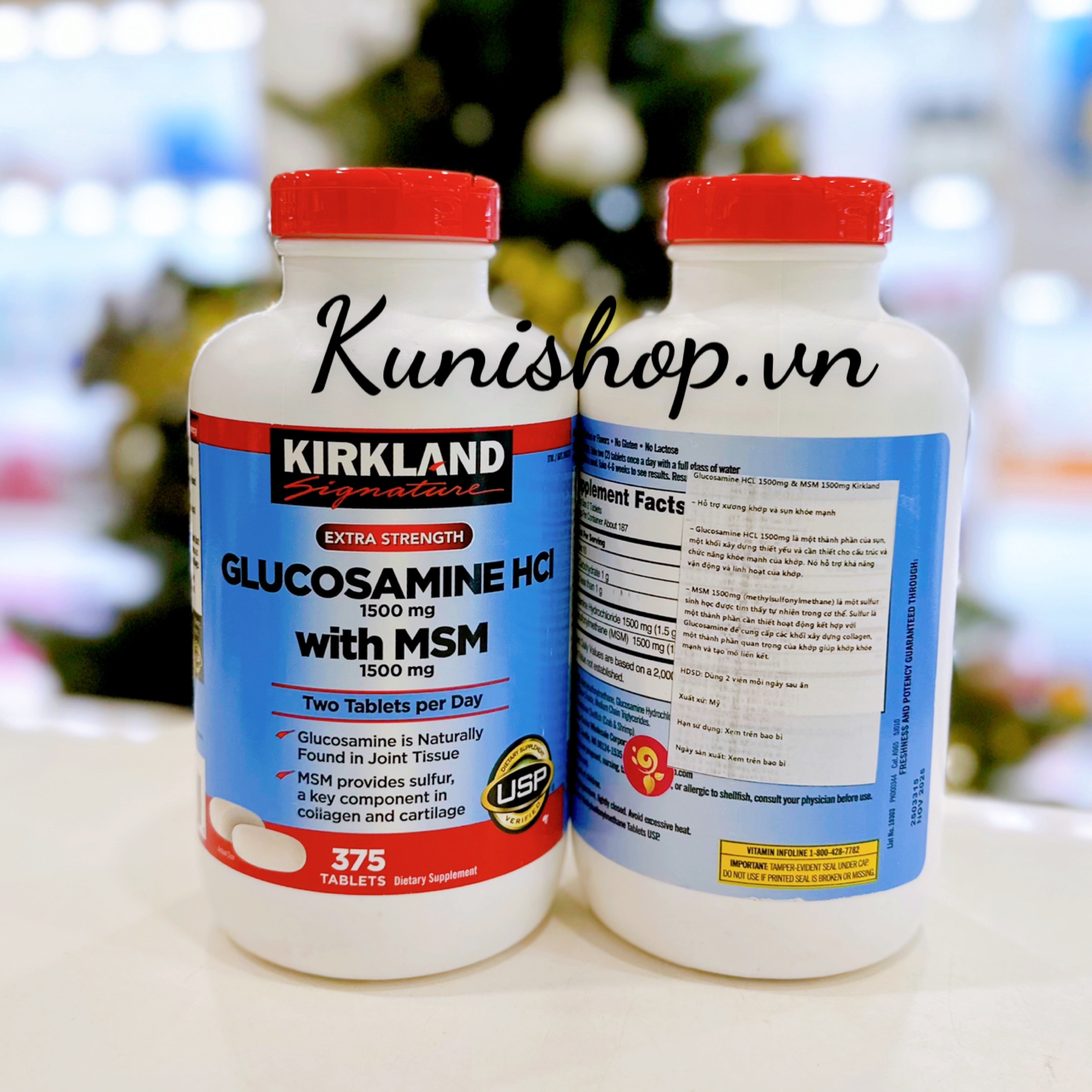 Glucosamine HCL 1500mg Kirkland With MSM 1500mg là viên uống bổ xương khớp nổi tiếng của Mỹ. Sản phẩm bổ sung glucosamine kèm theo hoạt chất giảm đau MSM giúp chấm dứt nhanh chóng những cơn đau viêm xương khớp, nuôi dưỡng các mô liên kết trong dịch khớp và sụn hiệu quả. Cơ thể chúng ta càng lớn tuổi thì khả năng tổng hợp glucosamine giảm dần, dẫn đến nguy cơ mắc các bệnh về xương khớp nên việc bổ sung glucosamine sẽ là cách tốt nhất để phòng ngừa cũng như hỗ trợ điều trị các bệnh về khớp.