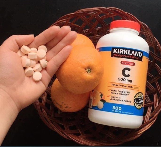 - Sử dụng 1 viên Vitamin C 500mg mỗi ngày, nên dùng sau bữa ăn. Có thể nhai được.