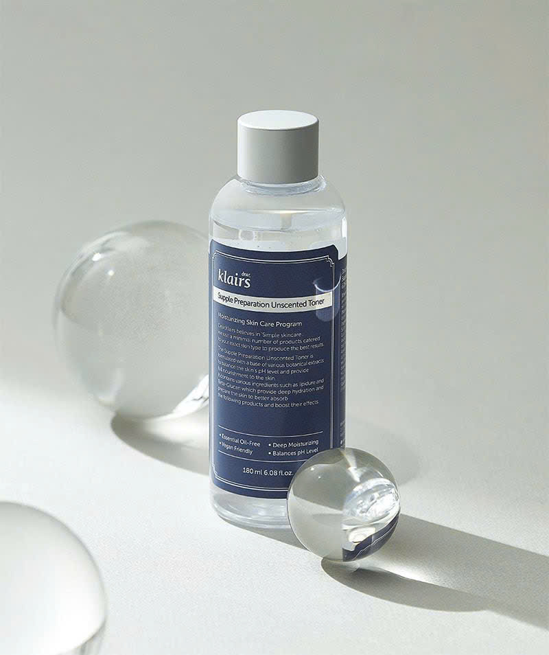 Klairs Supple Preparation Unscented Toner có chiết xuất từ thực vật, giúp cân bằng độ pH, tăng cường hiệu quả chăm sóc da Toner có dạng trong suốt, không màu, lỏng, nhẹ, hơi nhớt, thấm rất nhanh trên da. Sản phẩm giúp loại bỏ bụi bẩn và bã nhờn dư thừa trên da sau khi rửa mặt đồng thời cân bằng độ pH để các bước skincare tiếp theo đạt hiệu quả hơn.