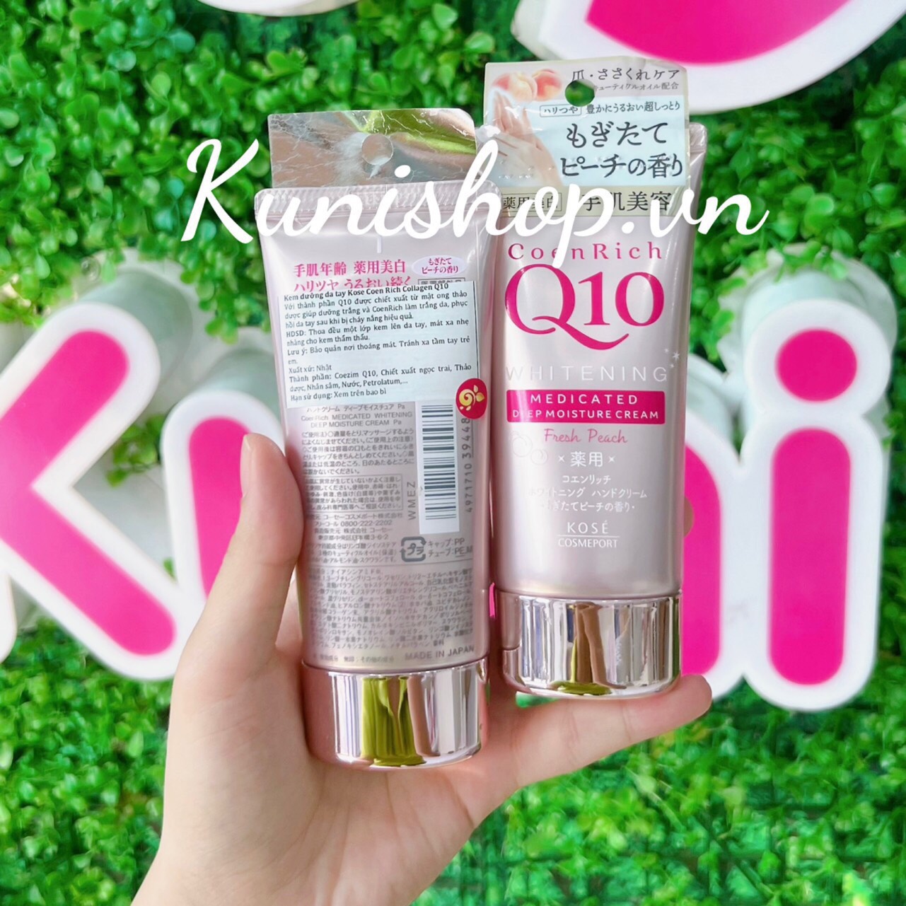 Kose CoenRich Q10 Whitening Medicated Cream là sản phẩm kem dưỡng da tay chứa Coezim Q10 & thảo dược thiên nhiên giúp dưỡng ẩm, xóa mờ vết chai, làm tăng sức sống cho làn da.