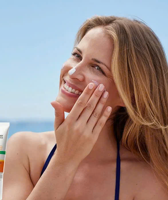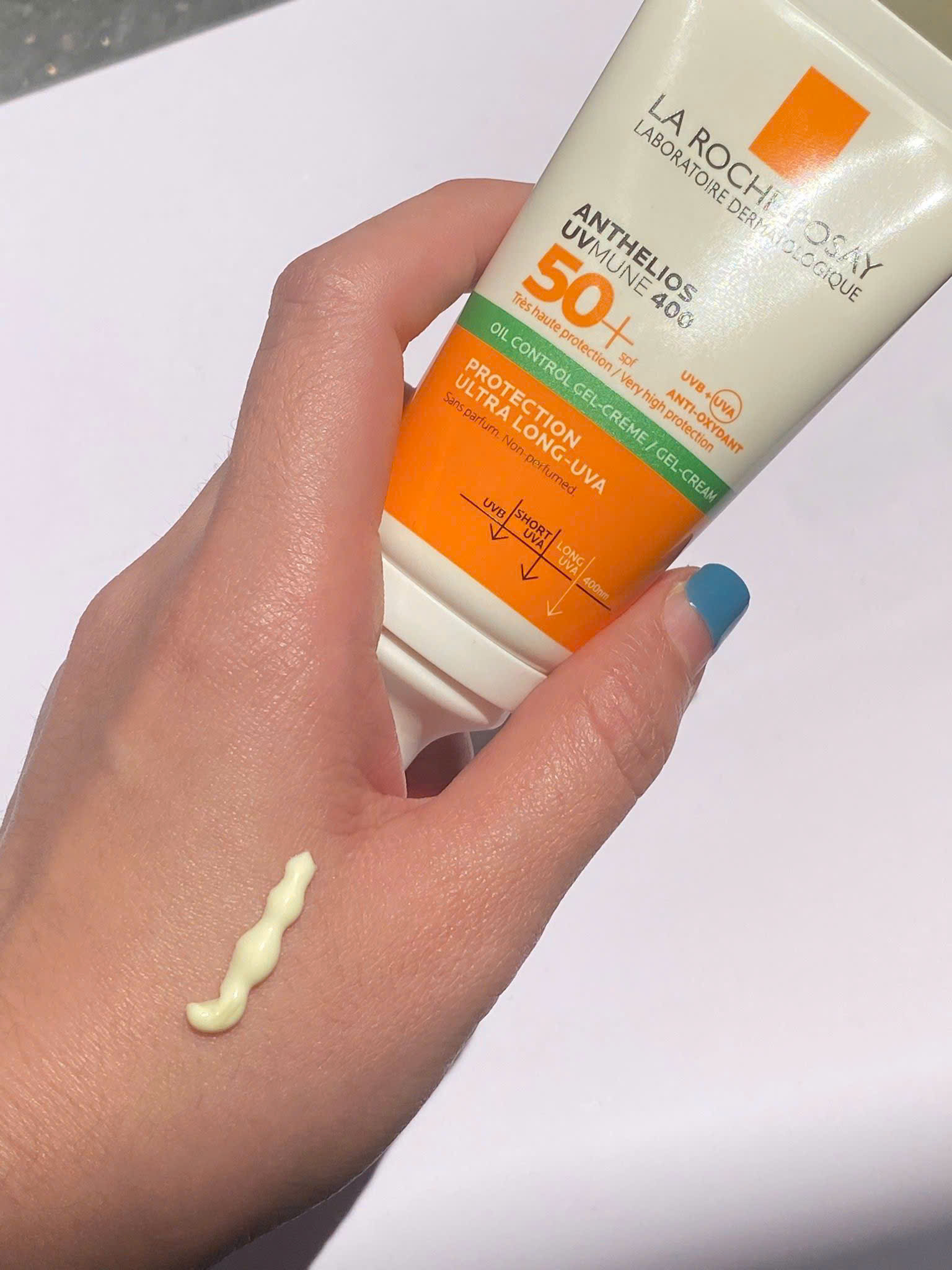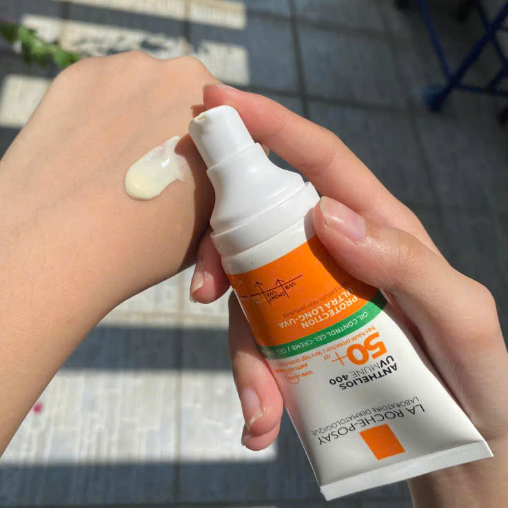 Sau các bước dưỡng da, lấy một lượng vừa đủ kem chống nắng La Roche-Posay ra lòng bàn tay.