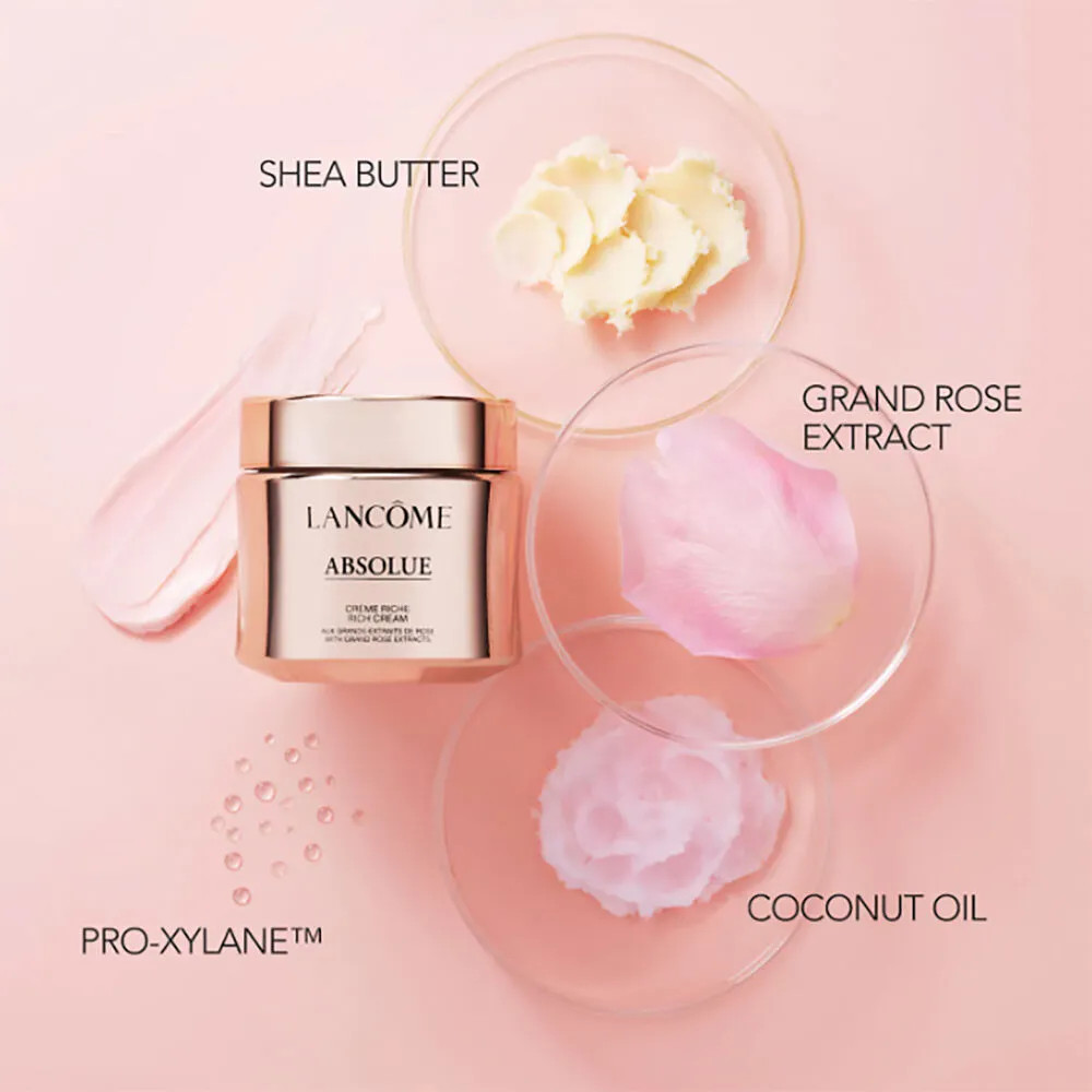 Kem dưỡng chuyên sâu Absolue mới, chiết xuất từ phức hợp Hoa hồng thượng hạng, giúp tái tạo da. Lancôme lưu giữ trọn vẹn sức mạnh tái tạo của Hoa hồng: nhờ vào quy trình chiết xuất tinh tế, tạo ra dưỡng chất độc quyền từ phức hợp Hoa hồng thượng hạng và đưa vào dòng sản phẩm chăm sóc da biểu tượng của Lancôme – Absolue.