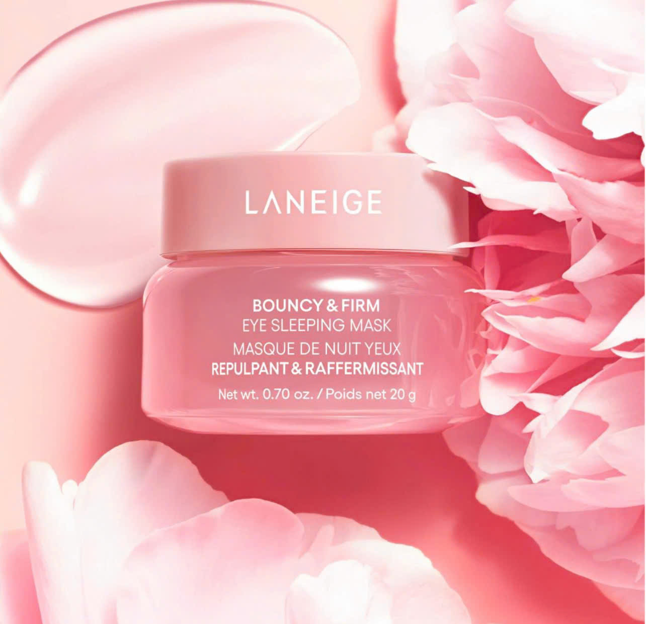 Mặt nạ ngủ cho mắt Laneige Bouncy Firm Eye Sleeping Mask là mặt nạ ngủ cho mắt chức năng được thiết kế để chống lại tình trạng bọng mắt và nếp nhăn quanh vùng mắt. Nó cung cấp khả năng chăm sóc 360 độ, nghĩa là nó không chỉ che phủ dưới mắt mà còn cả mí mắt và đuôi mắt, giải quyết nhiều vấn đề cùng một lúc. Được kết hợp mạnh mẽ với chiết xuất hoa mẫu đơn, phức hợp collagen và peptide, sản phẩm hứa hẹn sẽ làm săn chắc da, cải thiện độ đàn hồi và giảm sưng tấy chỉ sau một đêm.