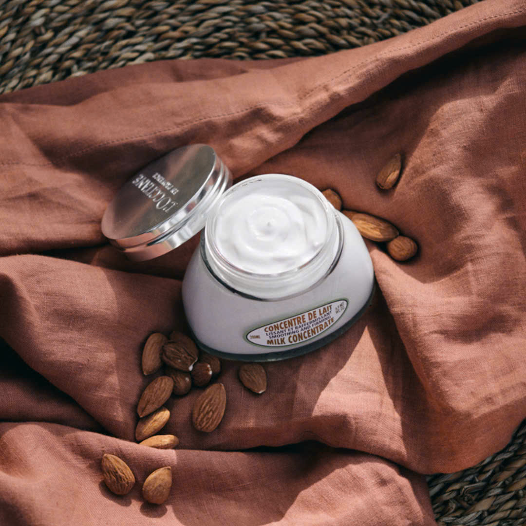 Được làm giàu với sữa hạnh nhân và dầu hạnh nhân ngọt từ Provence và được pha chế với 95% thành phần có nguồn gốc tự nhiên, Almond Milk Concentrate mang lại khả năng hydrat hóa lâu dài, cải thiện độ mềm mại và làm mịn da rõ rệt.