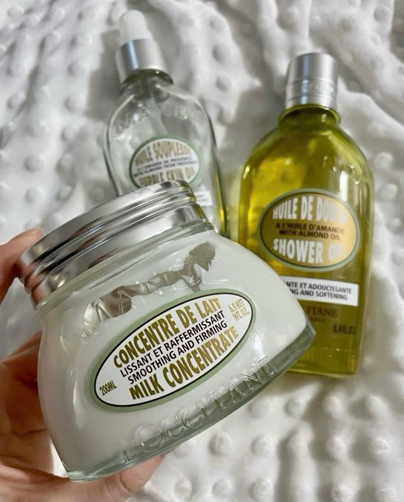 "Hạnh nhân được biết đến với đặc tính làm săn chắc và dưỡng ẩm. Kem dưỡng thể L'Occitane mang lại cho làn da của bạn cảm giác mềm mại và được nuôi dưỡng. Đó là một trong những sản phẩm bán chạy nhất vì hiệu quả đầy thuyết phục của nó."
