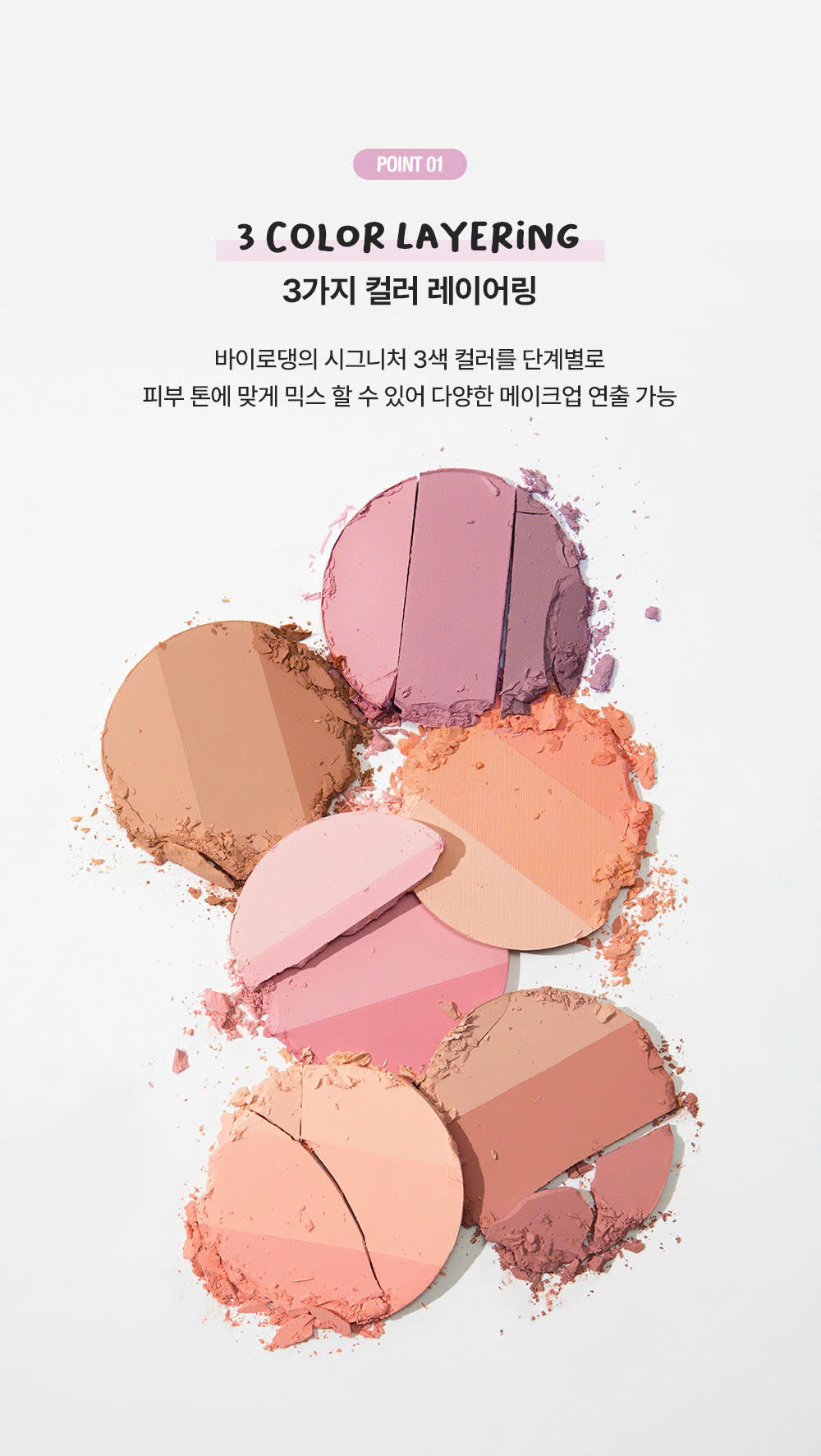 Phấn má hồng gồm có 3 lớp màu với sắc thái nhẹ nhàng tựa như màu nước, vô cùng tự nhiên. Bạn có thể đánh chồng nhiều lớp dễ dàng mà không khiến cho lớp trang điểm má trở nên đậm màu, làm phá vỡ sự hài hoà trong make-up look.
