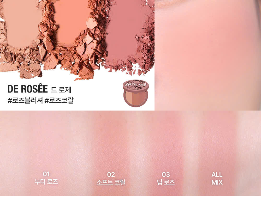 Art Class By Rodin Blusher ứng dụng công nghệ 2 trong 1 với hạt phấn mịn kết hợp cùng thành phần nhũ bắt sáng giúp che dấu và làm đều màu da hơn.