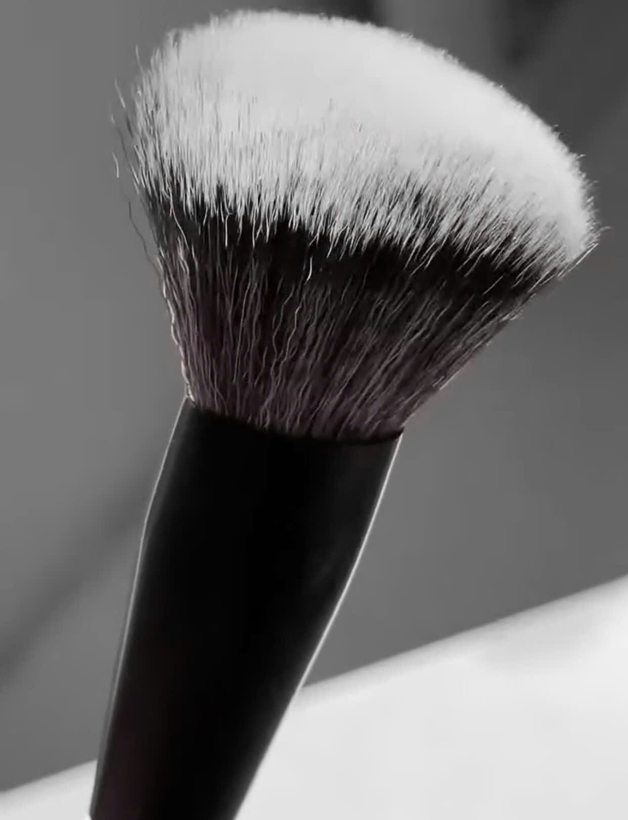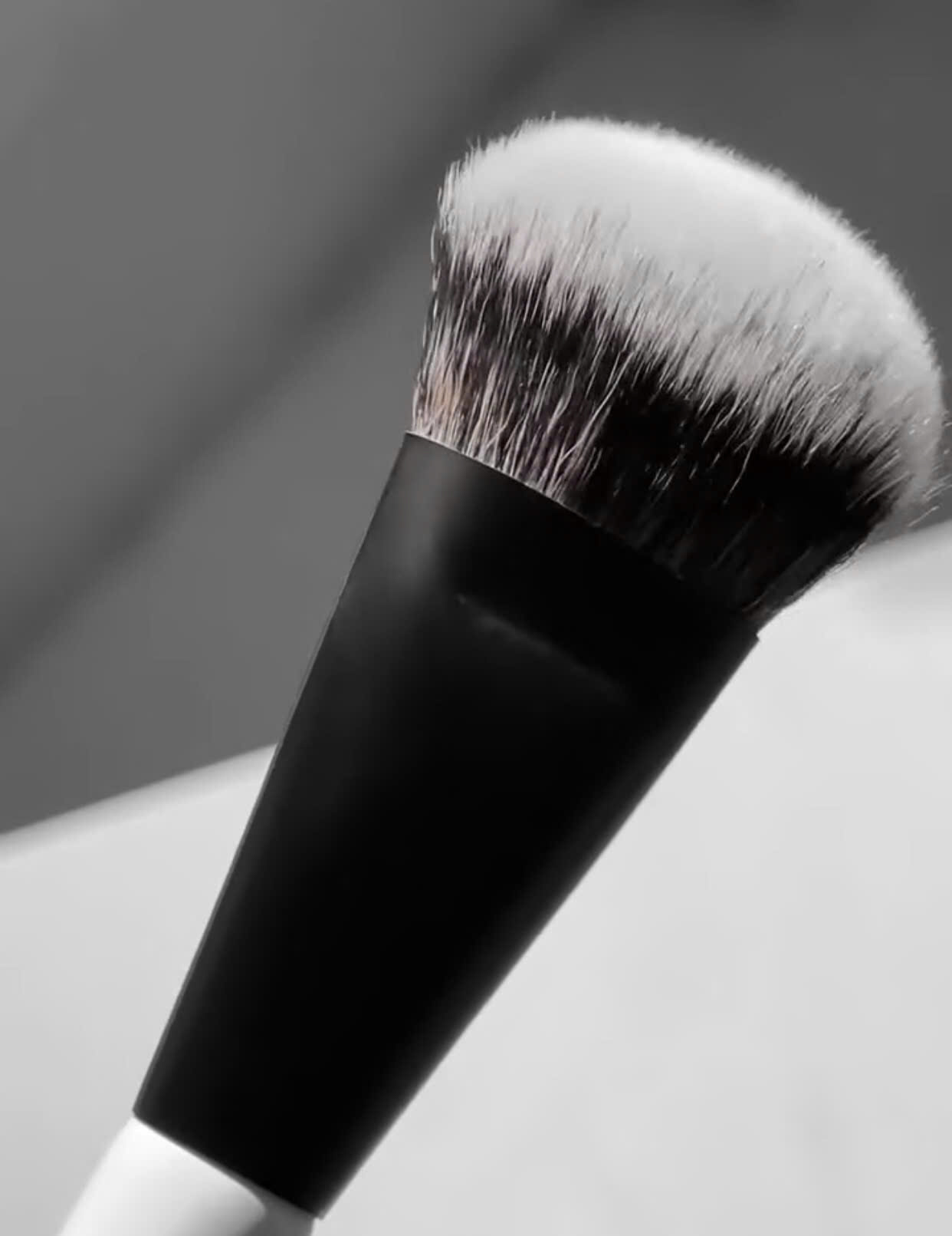 Đầu lớn của cọ có hình dáng dốc độc đáo, ôm sát các đường cong trên khuôn mặt một cách hoàn hảo để tán đều dễ dàng và hòa quyện liền mạch. Đầu cọ nhỏ gọn cho phép tán đều có kiểm soát hơn và giúp tán đều lớp nền theo mức độ che phủ mong muốn.