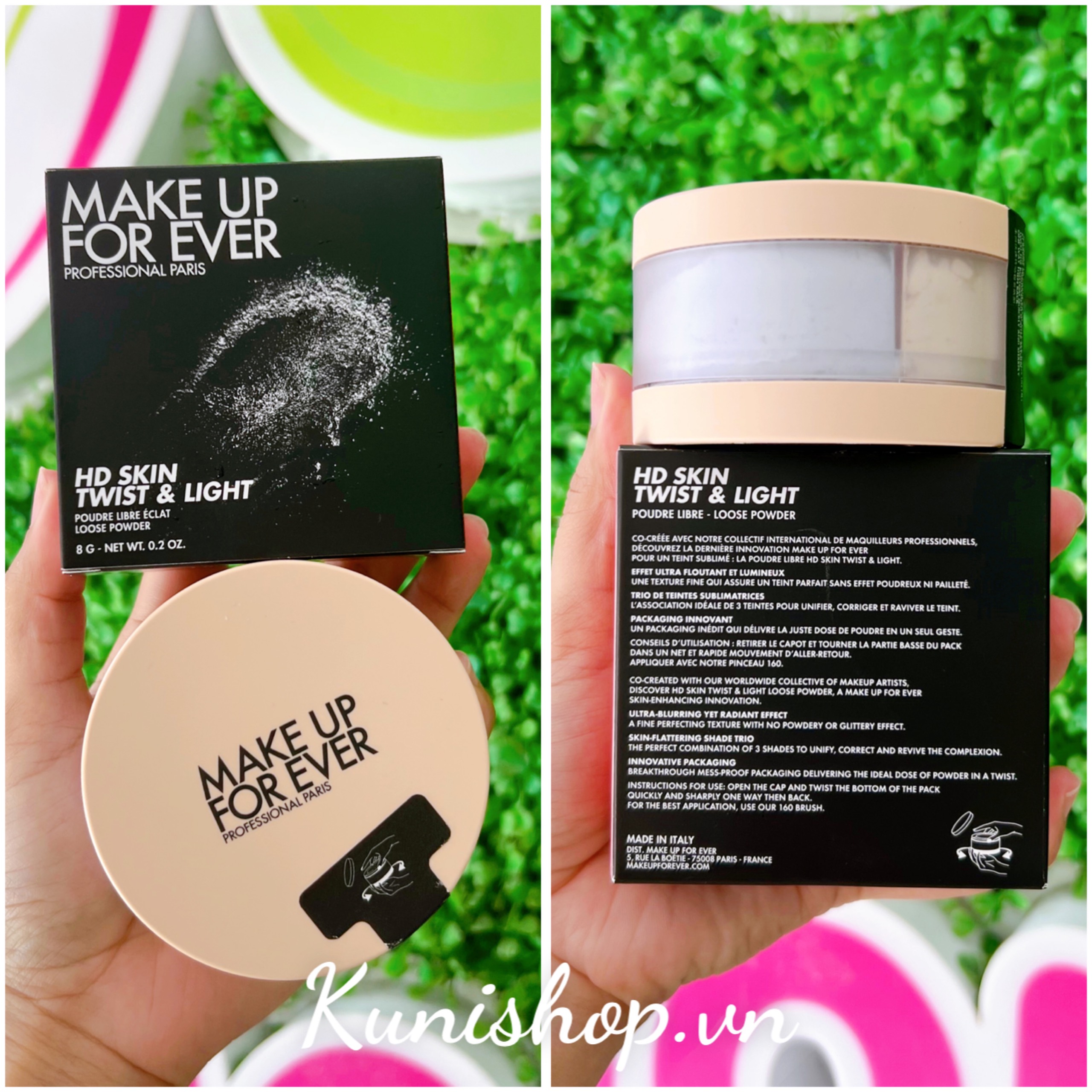 + Các loại bột rời đã được thiết kế để cung cấp cho bạn ba sắc thái bột trong một lọ và thiết kế lọ cải tiến giúp tạo ra 3 sắc độ bột mà không trộn lẫn với các phần khác. Makeup Forever khuyên bạn chỉ cần xoay phần đáy của lọ và phủi lớp phấn đã được phân phối ra ngoài, để sử dụng nhanh chóng và dễ dàng.