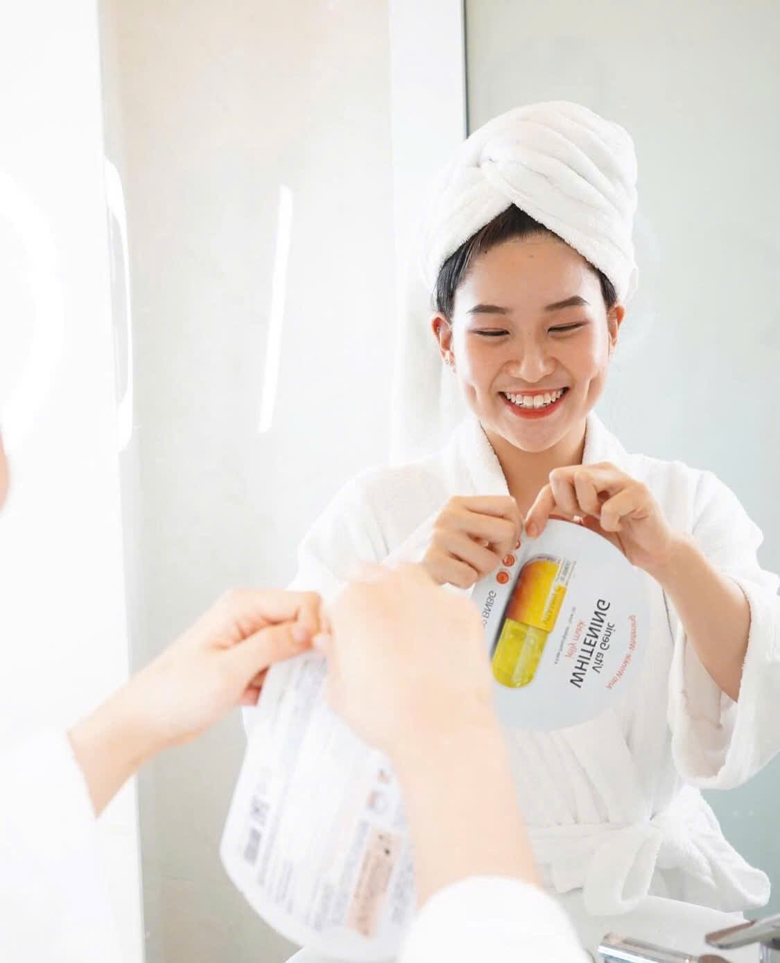 - Cẩn thận lấy sản phẩm ra khỏi bao bì và nhẹ nhàng đặt mặt nạ lên mặt