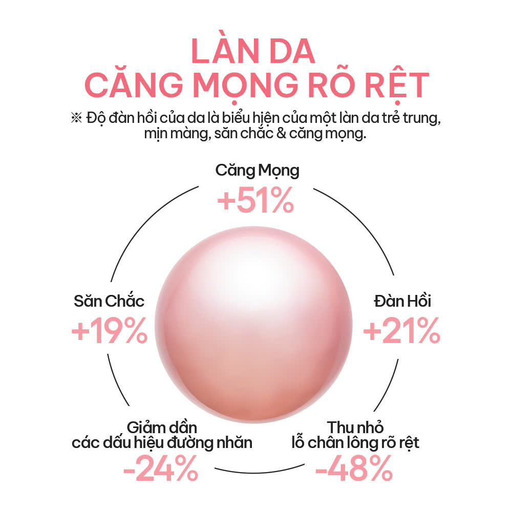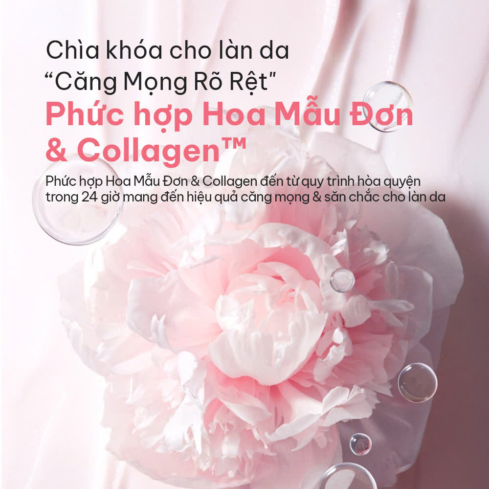 - Phức hợp hoa mẫu đơn và collagen giúp bổ sung độ ẩm cho da, mang đến hiệu quả căng mọng và săn chắc cho làn da.