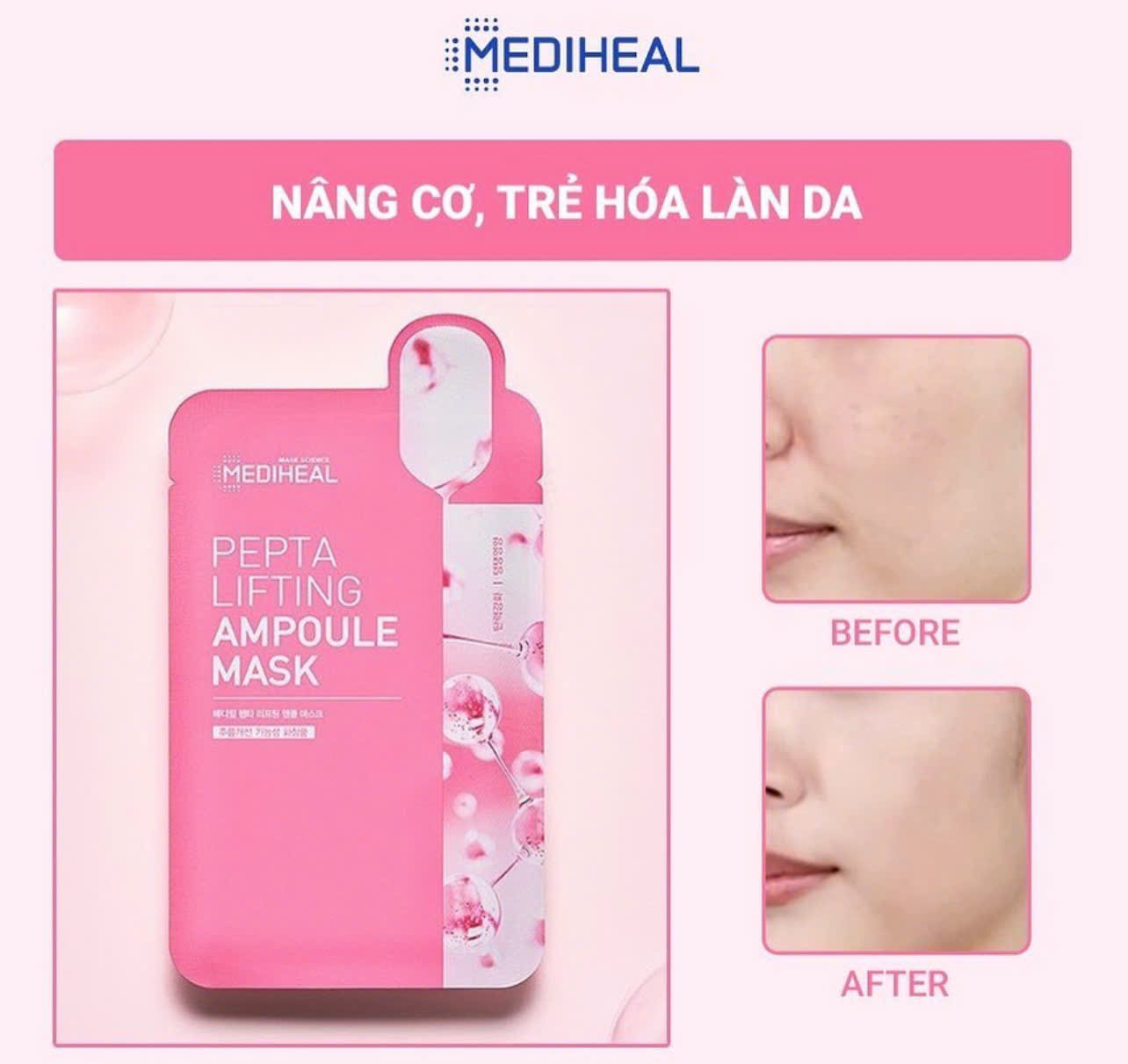 Mặt nạ giấy Mediheal Essence Mask là dòng mặt nạ giúp dưỡng ẩm, làm trắng, ngăn ngừa lão hoá cao cấp với các thành phần chính như Glycerin, Niacinamide, Peptide, Collagen,… giúp dưỡng da căng mịn, mọng nước, làm đều màu, sáng mịn da, ngăn ngừa các nếp nhăn và lão hóa, mang lại làn da tươi sáng, rạng ngời.