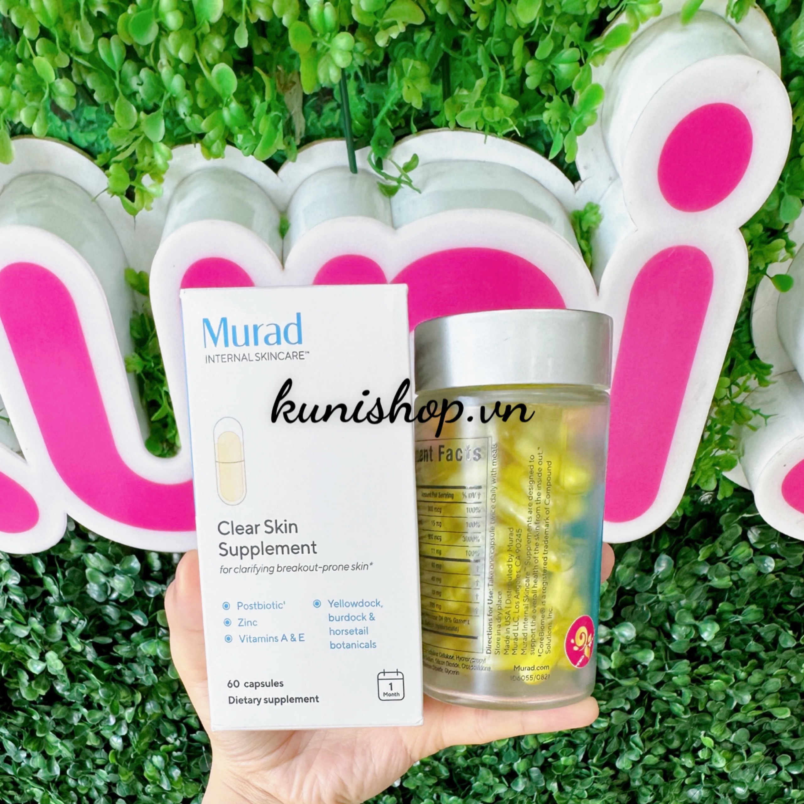 - Để có kết quả trị mụn tối ưu, nên kết hợp Viên uống giảm mụn Murad Pure Skin Clarifying Dietary Supplement với hệ thống chăm sóc da của Murad.
