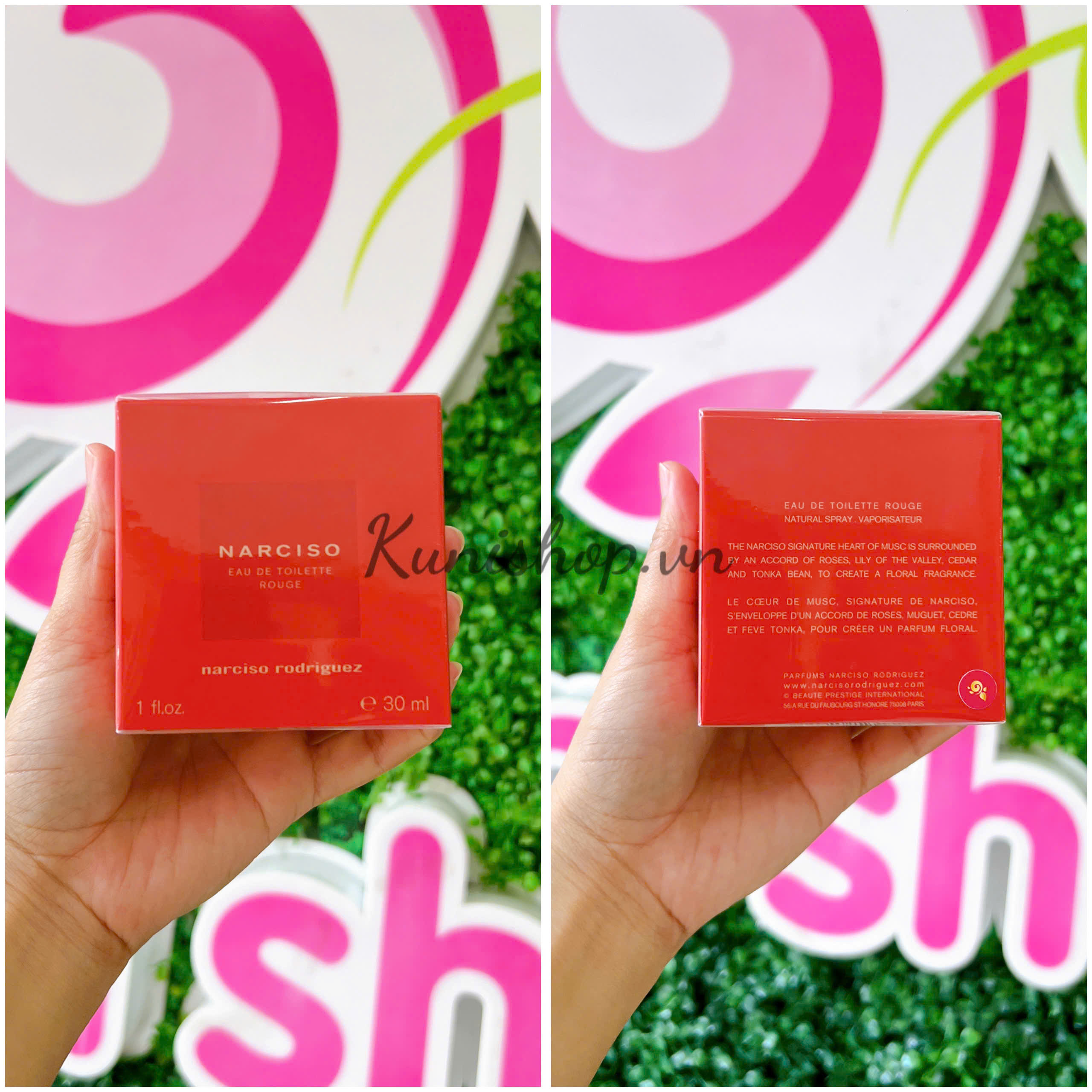 Narciso Rodriguez Rouge EDT có mùi hương thoáng hơn và rạng rỡ hơn phiên bản Rouge EDP năm 2018. Các nốt hương hoa xuất hiện từ những khoảnh khắc đầu tiên, với những bông hồng nở rộ cùng với cyclamens và hoa huệ trắng và hơi xanh mở ra một khu vườn nơi các loài hoa đua nhau khoe sắc thắm. Nốt hương đầu của Narciso Rodriguez Rouge EDT là sự pha trộn nhẹ nhàng của hoa hồng và hoa linh lan thung lũng. Phiên bản này vẫn giữ nguyên ADN của phiên bản EDP nhưng phiên bản này đã phát triển một nốt hương xạ hương hoàn toàn mới và độc đáo cho ngôi nhà của Narciso Rodriguez, nốt hương là sự dịu dàng và yên bình của nhóm đậu tonka và cỏ vetiver.