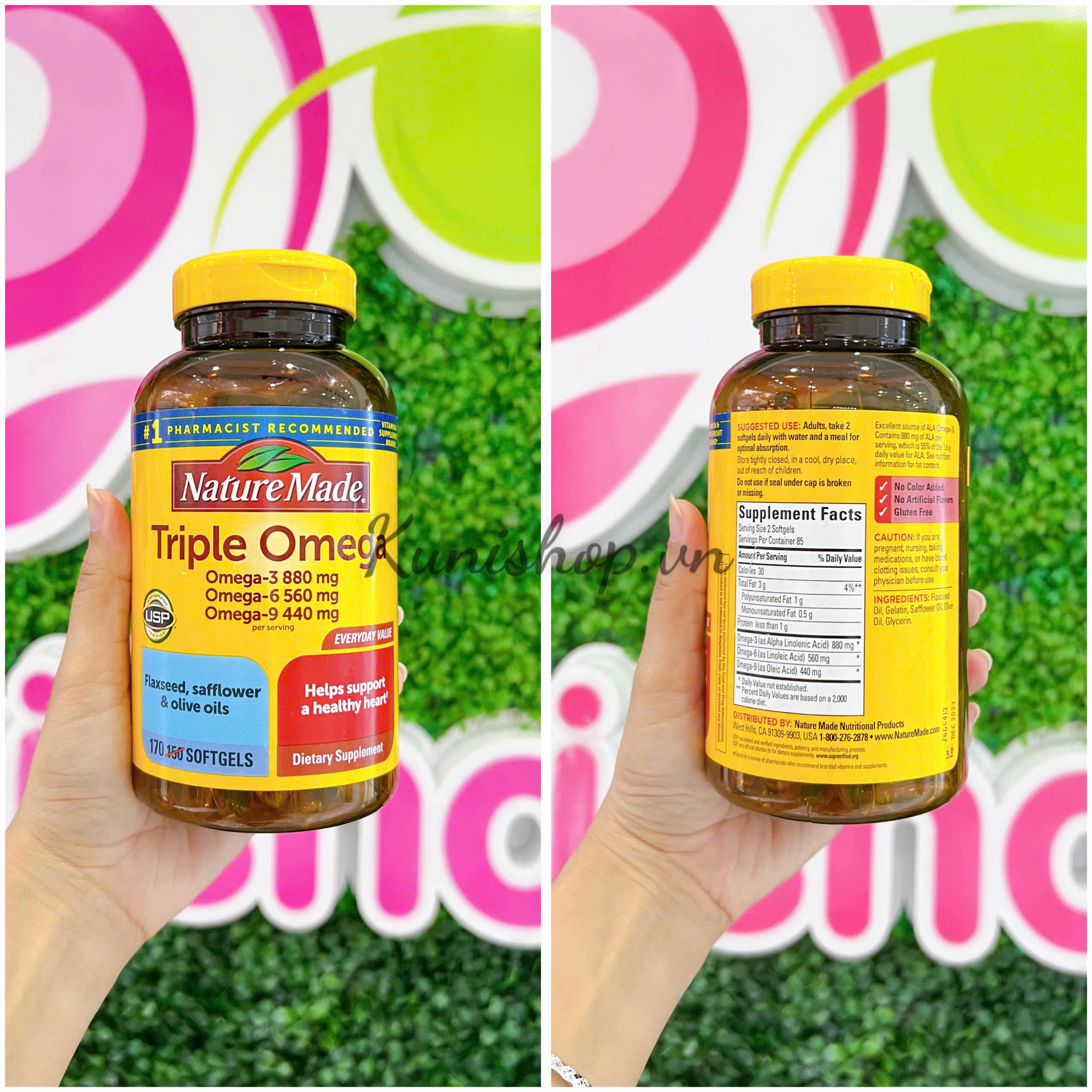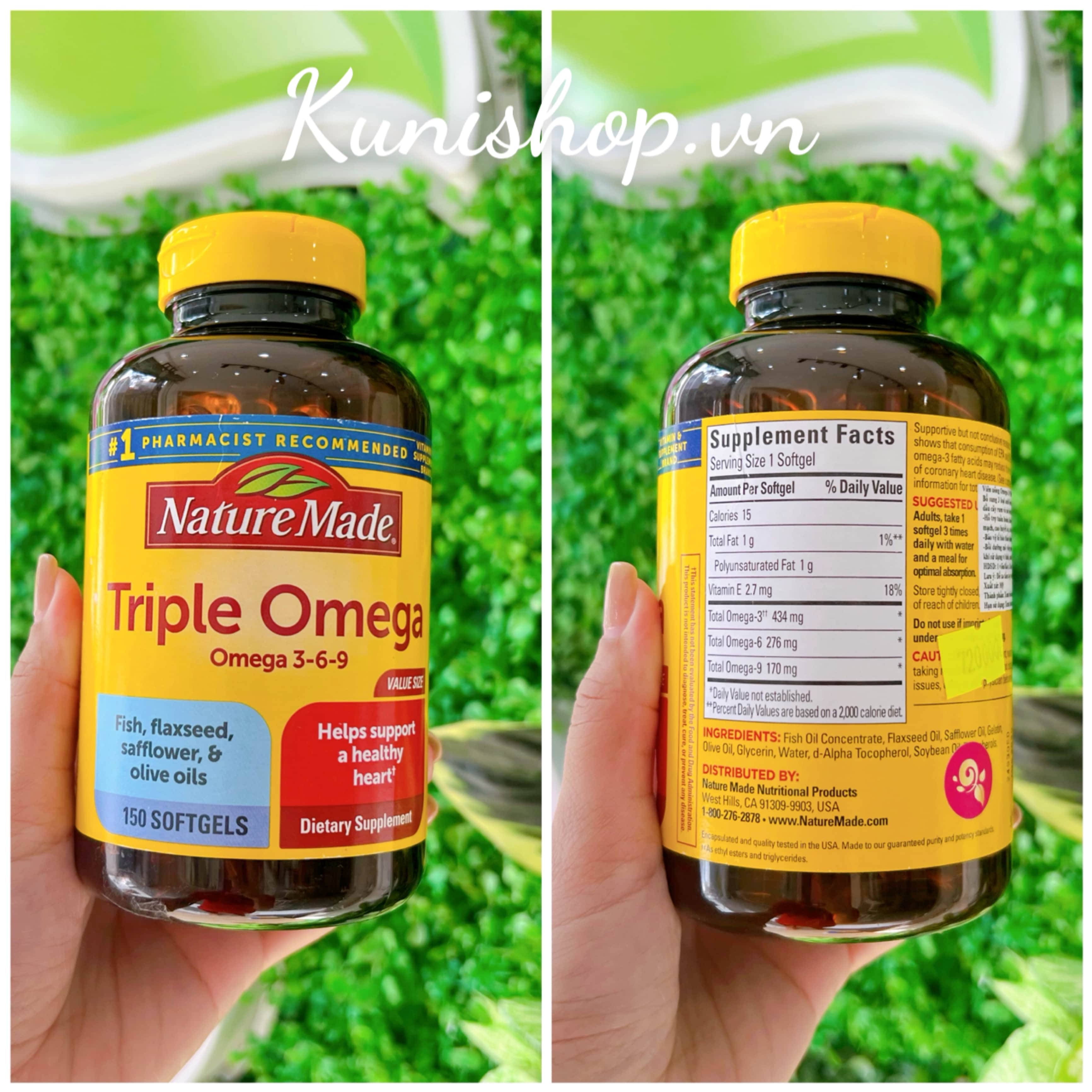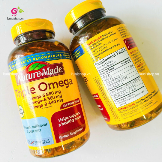 Nature Made Triple Omega cung cấp công thức cân bằng Omega-3,6 ,9, các axit béo từ hỗn hợp của dầu cá, dầu lanh, dầu ô liu và cây rum. Nhiều chuyên gia sức khỏe ủng hộ việc sử dụng Axit béo Omega-3 và Omega-6 như là một phần của kế hoạch ăn uống cho tim mạnh khoẻ.