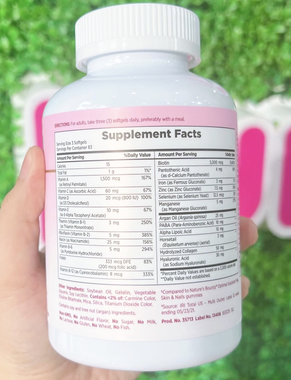Điểm đặc biệt của sản phẩm chính là không chỉ chứa các loại vitamin, khoáng chất giúp đẹp da, tóc và móng mà còn có hàm lượng biotin đến 5000 mcg. Sản phẩm được Cục Quản lý Thực phẩm và Dược Phẩm Hoa Kỳ công nhận và cho phép sản xuất, phân phối tại Mỹ cũng như trên toàn thế giới.