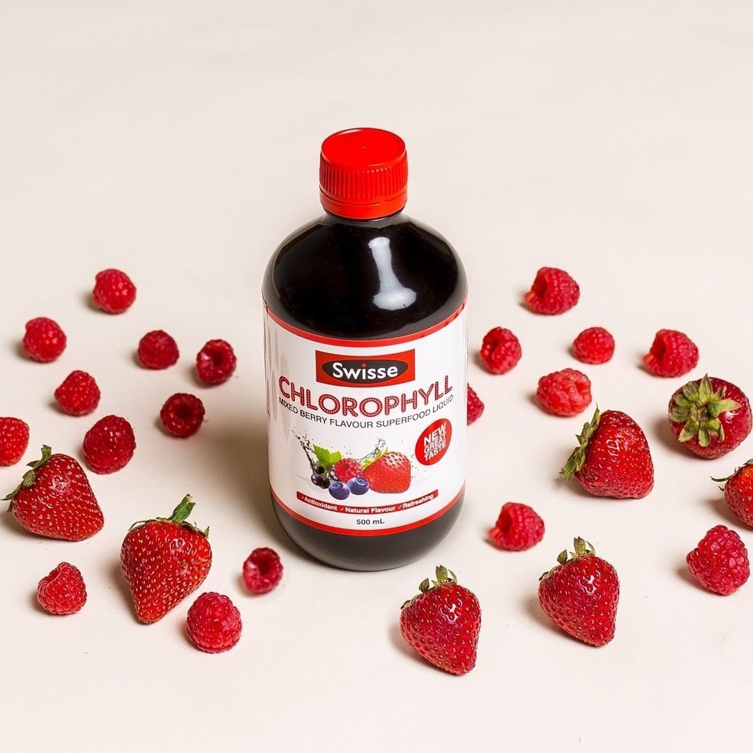 Nước Diệp Lục Swisse Chlorophyll là sản phẩm hỗ trợ sức khỏe, được tinh chế từ sắc tố được tìm thấy trong lá cây, rất giàu tính kiềm, có thể sử dụng hàng ngày để hỗ trợ loại bỏ các chất cặn bã và độc hại ra khỏi cơ thể, giúp cơ thể khỏe mạnh. Swisse Chlorophyll với hai hương vị: dâu và bạc hà thơm ngon, dễ uống, hấp thu nhanh.