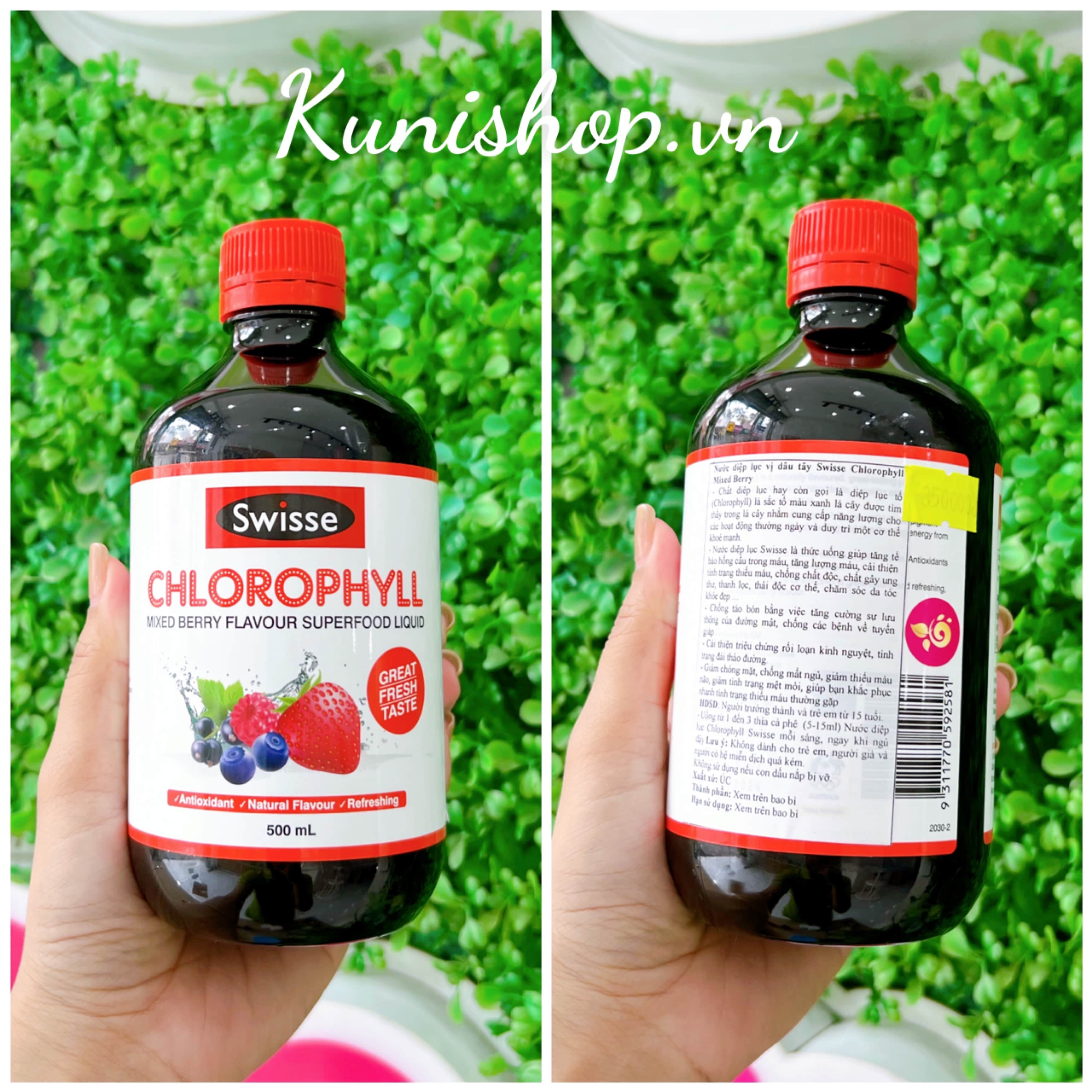 – Chúng ta nên bổ sung nước diệp lục Swisse Chlorophyll hàng ngày để giúp thanh lọc cơ thể, loại bỏ các chất cặn bã và độc hại ra khỏi cơ thể, giúp cơ thể khỏe mạnh và chống lại các loại bệnh tật