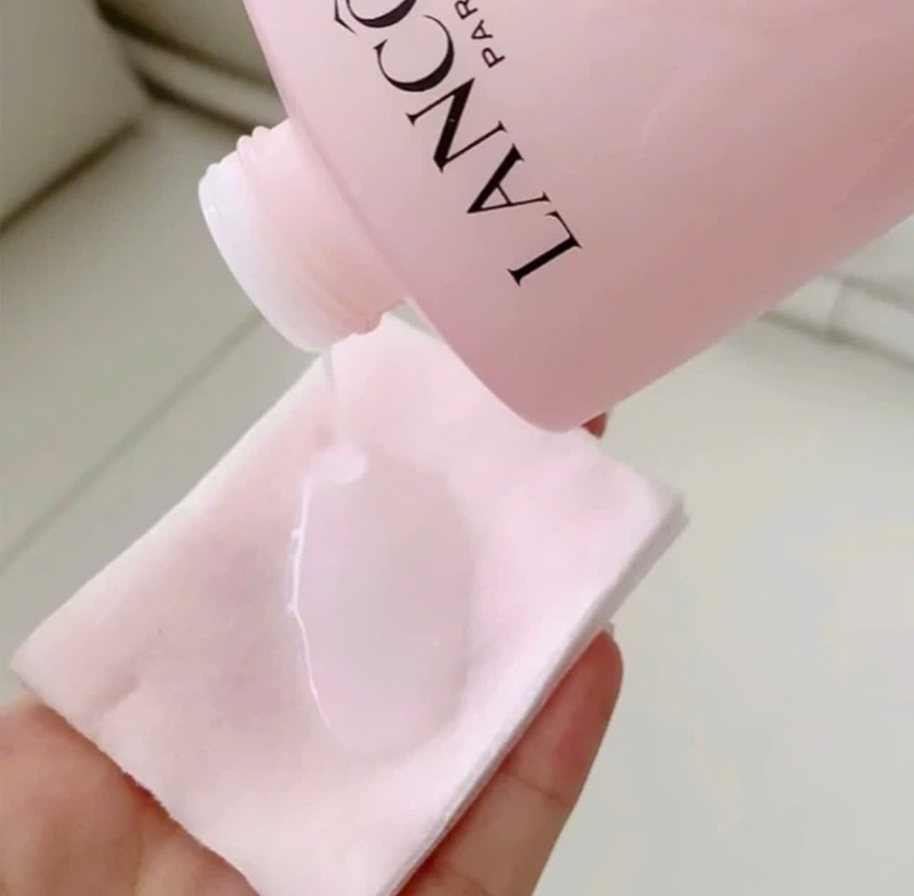 - Sau khi làm sạch da đổ một lượng nước hoa hồng lên bông tẩy trang.
