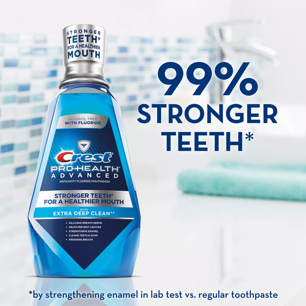 Crest Pro-Health Advanced là nước súc miệng được xây dựng với thành phần hoạt tính đã được chứng minh lâm sàng chứa fluoride. Thành phần này tăng cường bảo vệ răng của bạn và giúp ngăn ngừa sâu răng. Crest Pro-Health Advanced Extra Deep Clean cũng không chứa cồn.