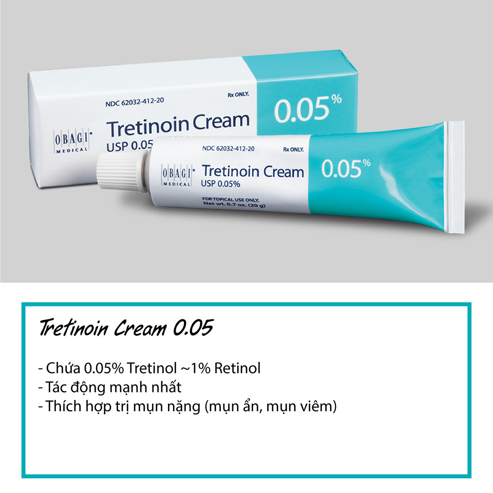 – Dưỡng ẩm đầy đủ cho da trong quá trình sử dụng Tretinoin để tránh làm da khô, bong tróc. Trường hợp da nhạy cảm/da mới sử dụng có thể thoa Tretinoin sau bước kem dưỡng ẩm để giảm bớt kích ứng da. Gợi ý kem dưỡng thích hợp: Obagi Kinetin Hydrating cream.