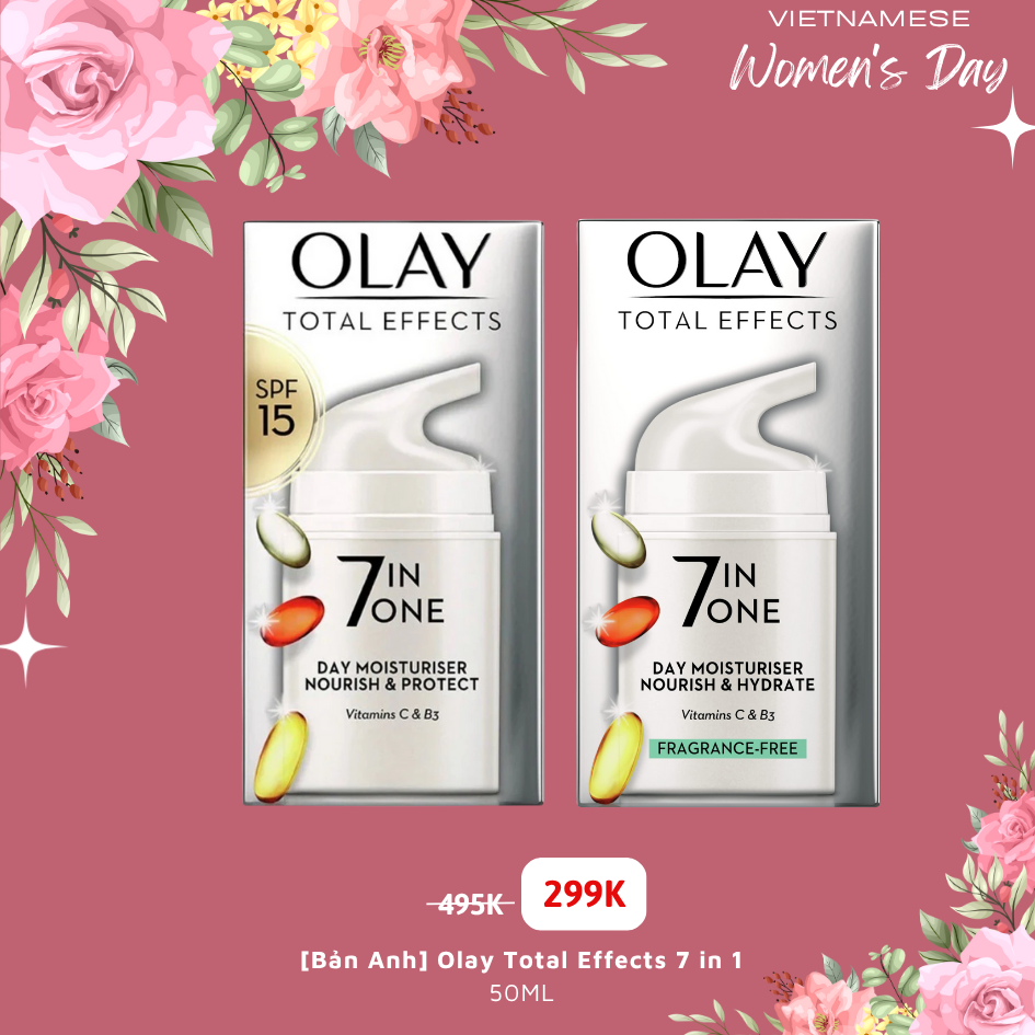 Kem dưỡng Olay Total Effect được ra đời vào năm 2000 và là dòng sản phẩm đầu tiên trên thế giới sử dụng niacinamide (vitamin B3) làm thành phần chống lão hóa, bên cạnh đó còn có vitamin C giúp làm sáng da.
