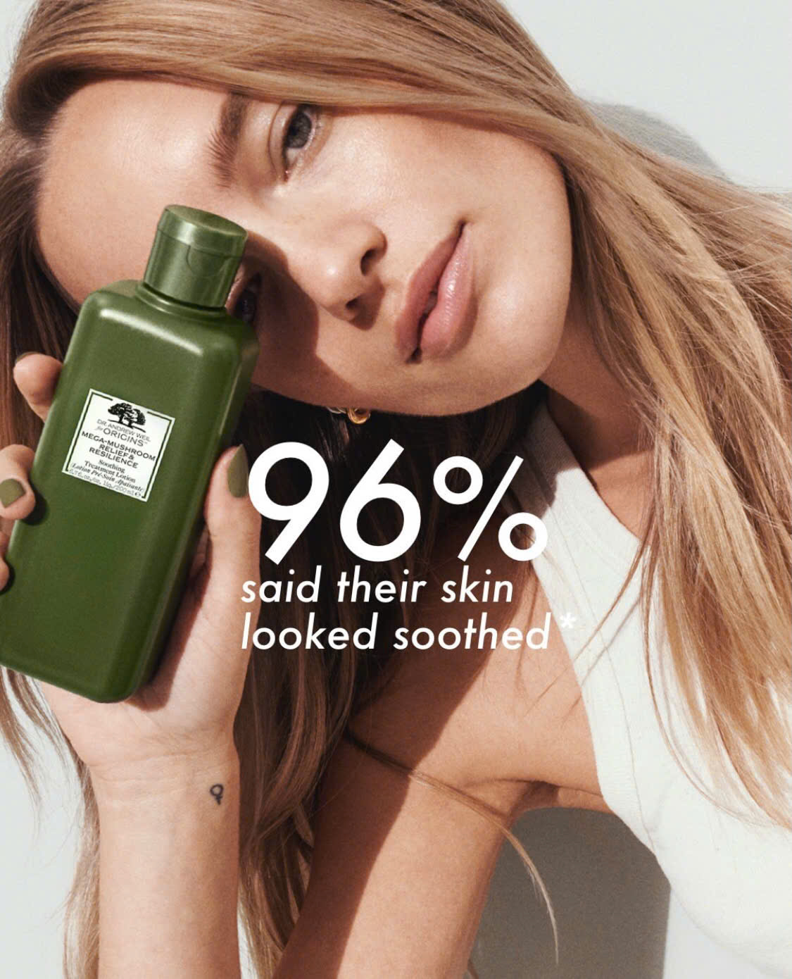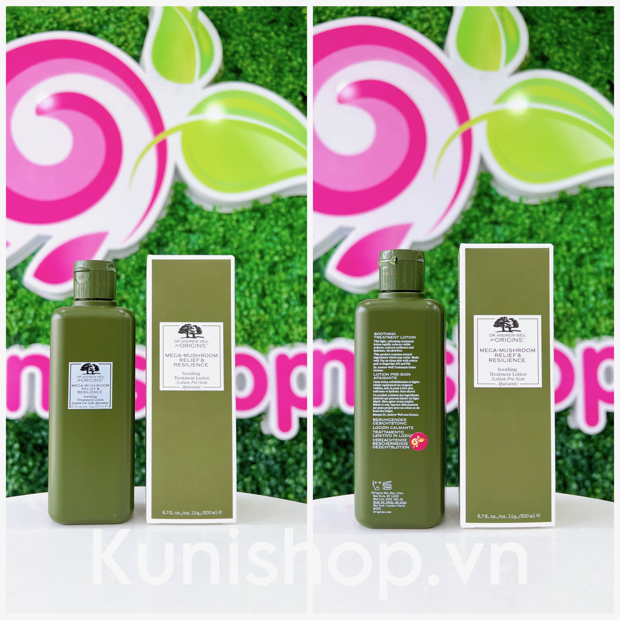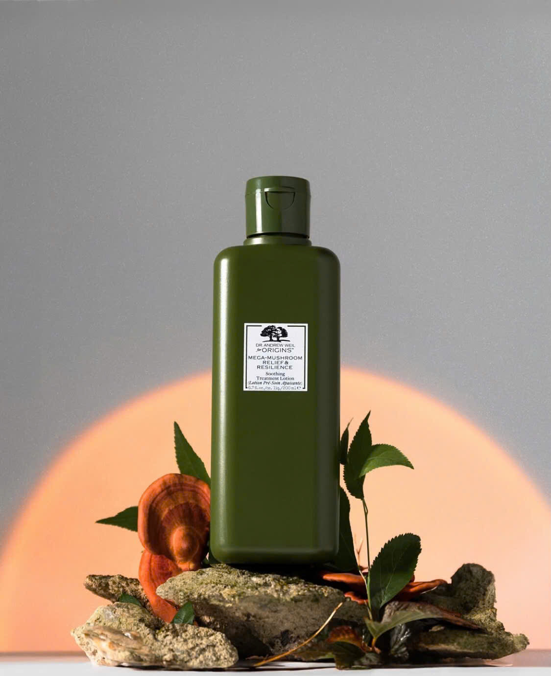 Origins MEGA MUSHROOM Relief & Resilience Soothing Treatment Lotion là sản phẩm chiết xuất từ nấm linh chi Trung Hoa nhẹ nhàng, dịu nhẹ, làm dịu các tổn thương ửng đỏ và tình trạng kích ứng da ngay sau một lần sử dụng.