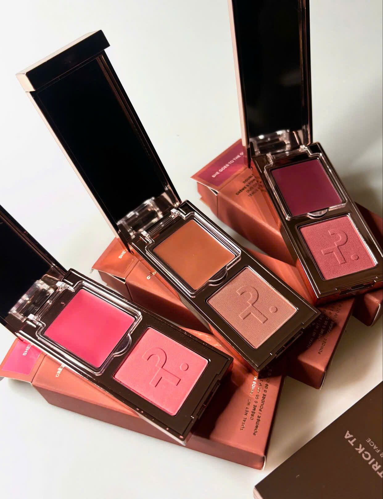 Packaging của Patrick Ta Double-Take Cream And Power Blush Duo khá đặc biệt vì thiết kế 2in1 tiện lợi gồm 1 ngăn má dạng phấn và 1 ngăn dạng kem. Các cô nàng có thể tùy chọn sản phẩm phù hợp cho mình hay bạn có thể kết hợp cả 2 kết cấu này để tạo độ bền màu và hiệu ứng lan tỏa bất ngờ.