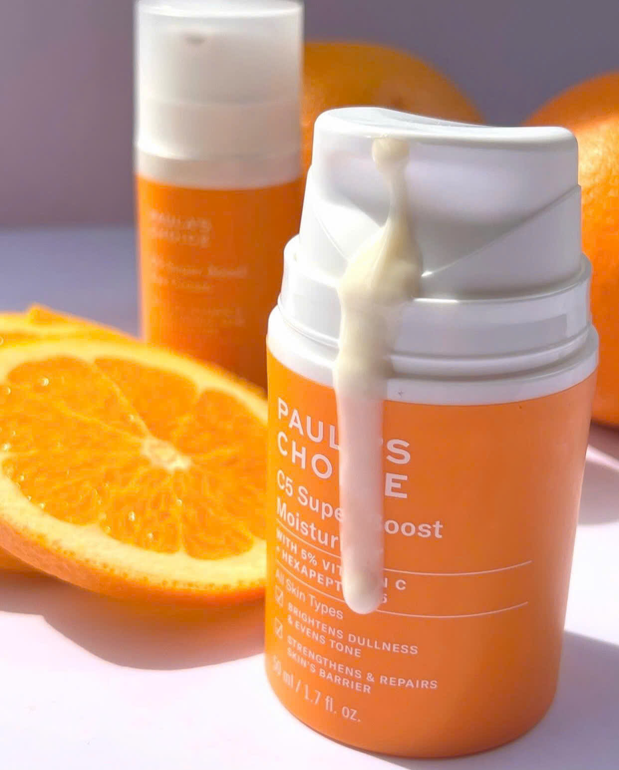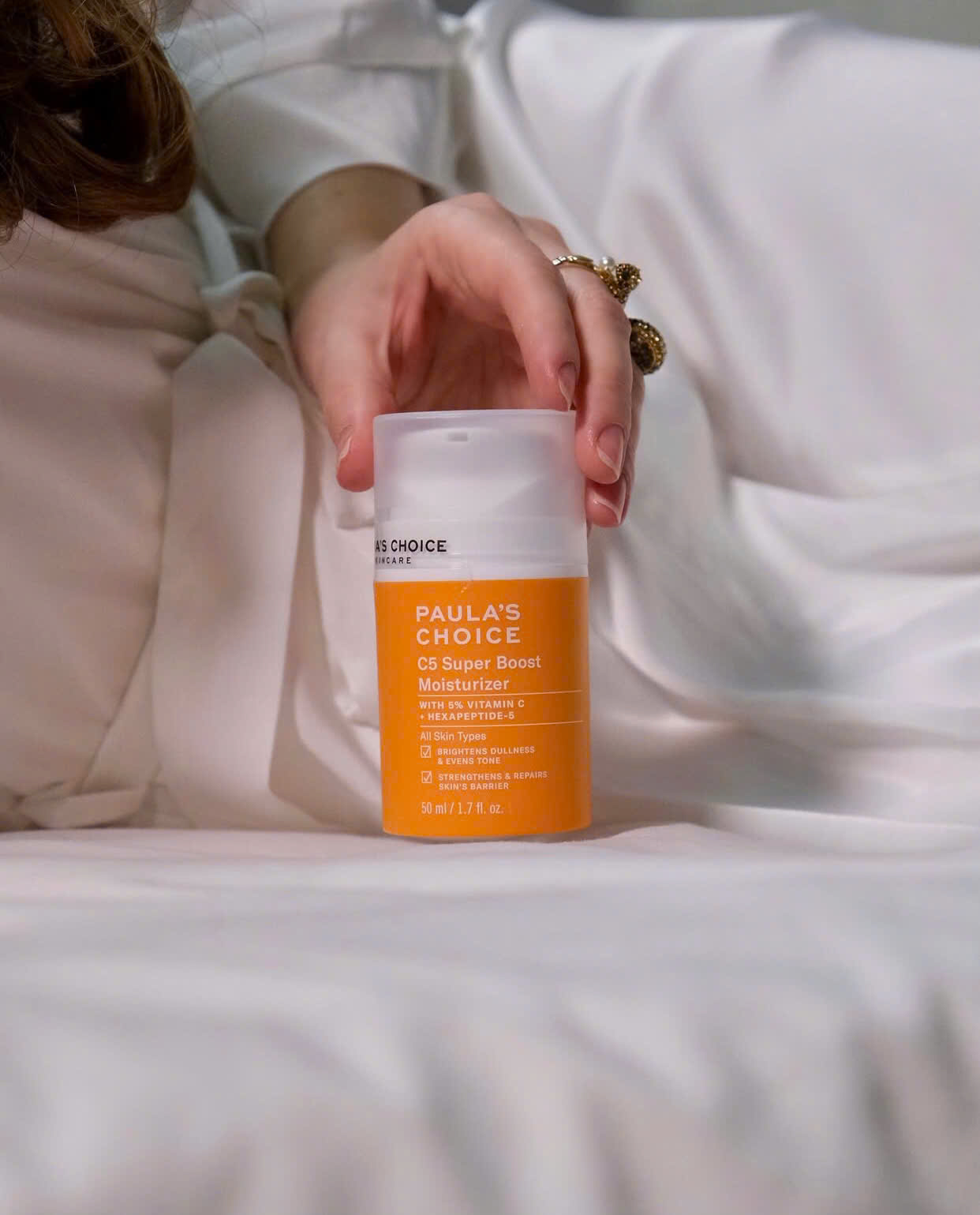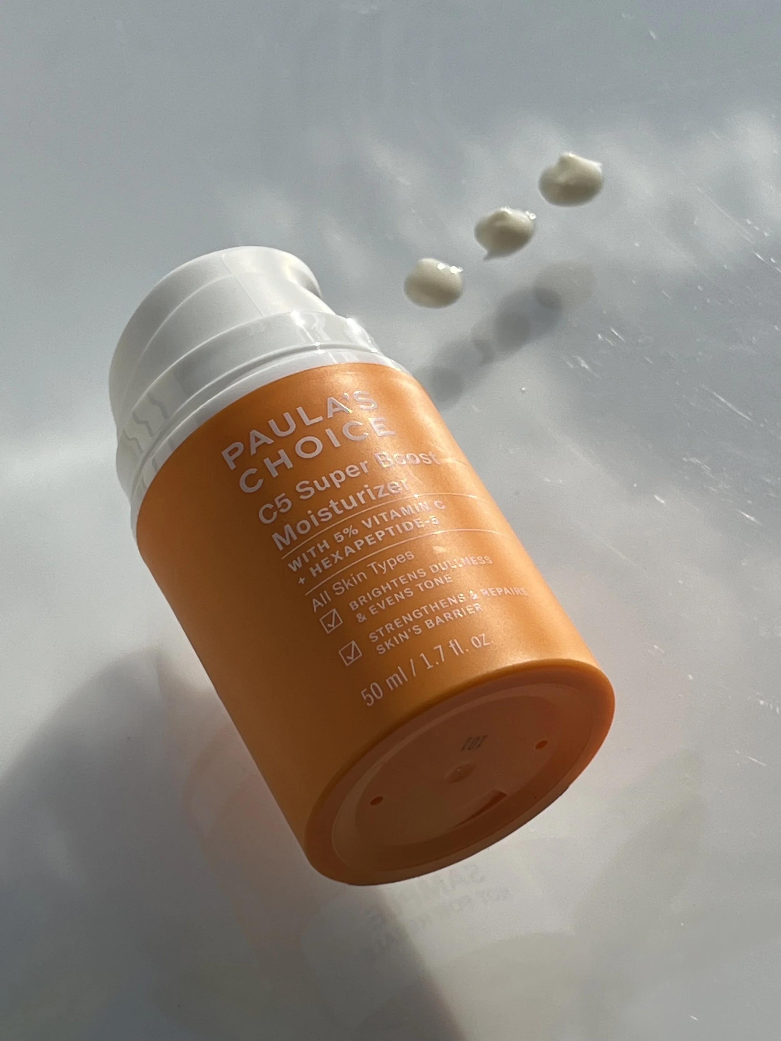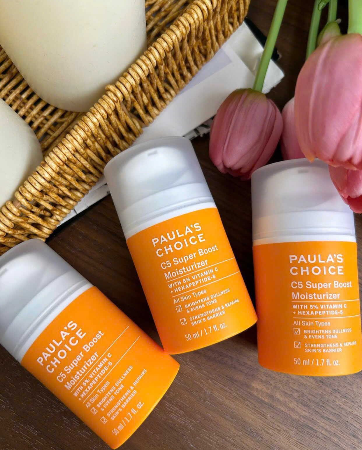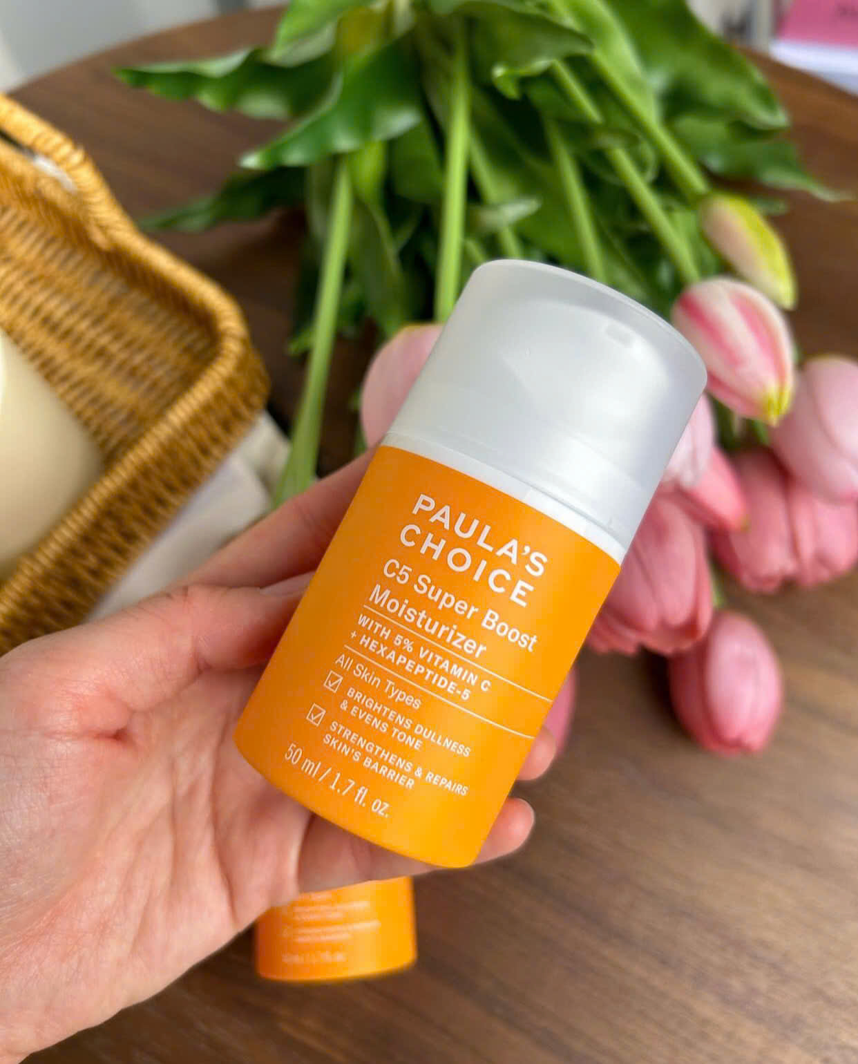 Paula’s Choice C5 Super Boost Moisturizer là kem dưỡng ẩm đa năng giúp làm sáng da, tăng cường collagen và dưỡng ẩm sâu nhờ 5% Vitamin C ổn định, Hexapeptide-5 và hỗn hợp lipid màng bọc kép. Sản phẩm có kết cấu mỏng nhẹ, thấm nhanh, giúp bảo vệ da, giảm nếp nhăn và củng cố hàng rào bảo vệ da hiệu quả.