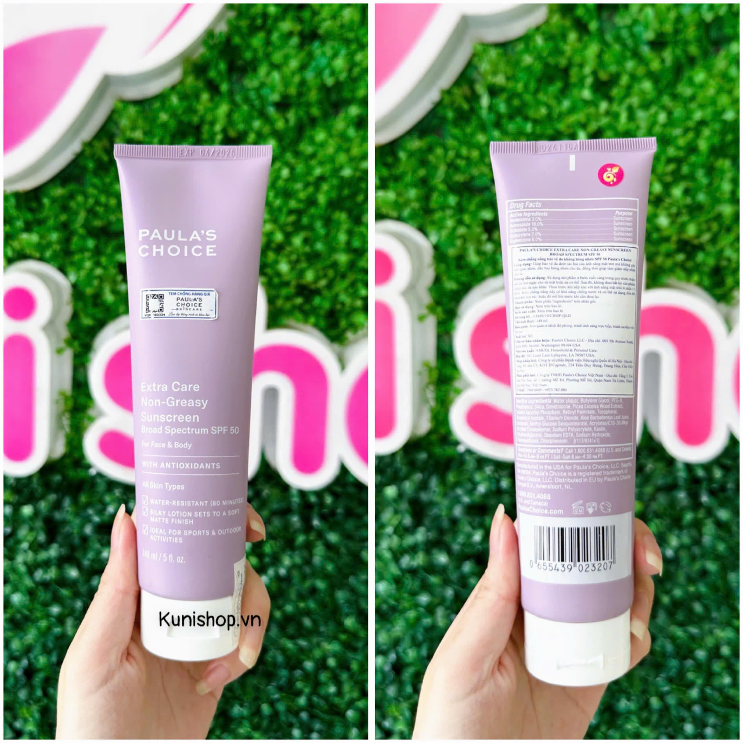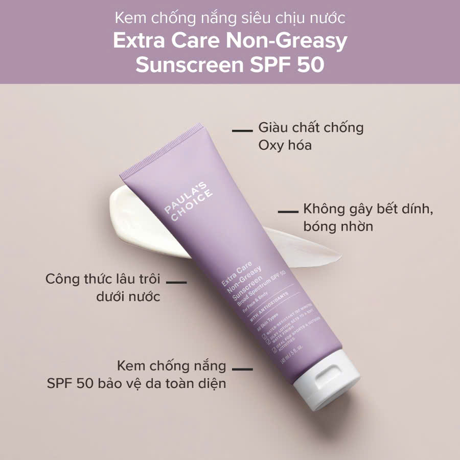 Kem chống nắng Paula’s Choice toàn diện EXTRA CARE Non-Greasy Sunscreen SPF 50 với kết cấu dạng lotion giúp dễ dàng sử dụng, thẩm thấu nhanh chóng cho bạn cảm giác khô ráo không nhờn dính như các loại kem chống nắng khác.