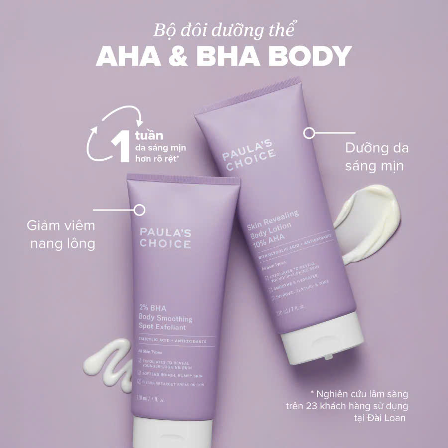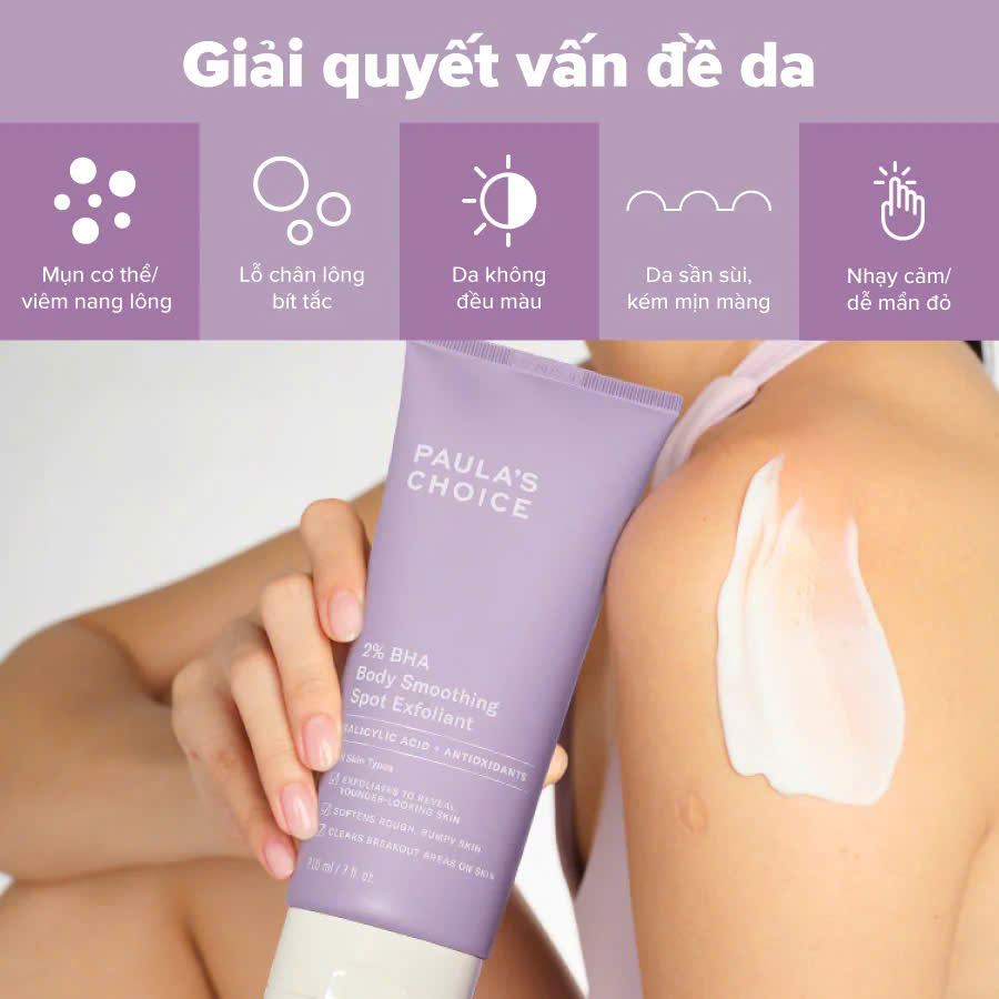 Paula's Choice 2% BHA Body Smoothing Spot Exfoliant là phiên bản đặc biệt dành cho thị trường Việt Nam. Sản phẩm dưỡng thể dạng chấm điểm, với khả năng chăm sóc và cải thiện các vấn đề như mụn cơ thể, dày sừng nang lông hay viêm nang lông tại cánh tay, chân, lưng và ngực, trả lại làn da láng mịn và tràn đầy sức sống.