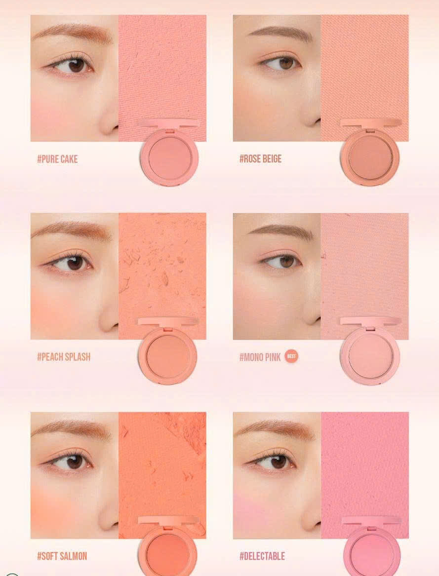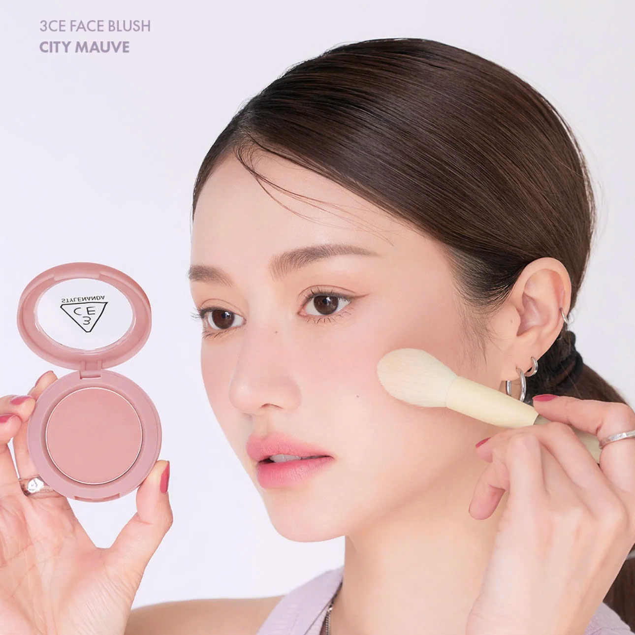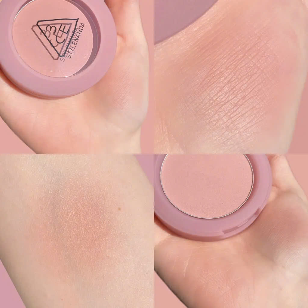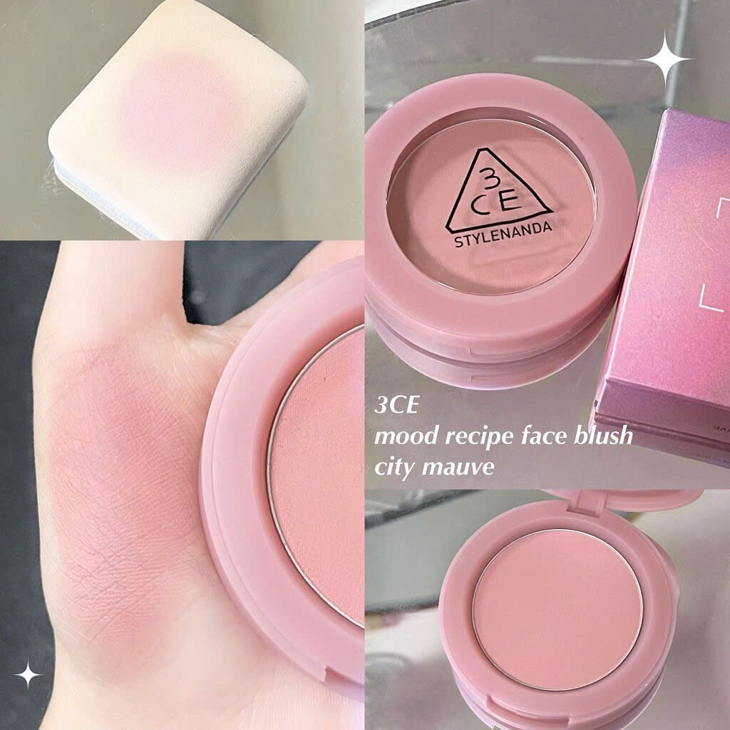 Phấn Má Hồng 3CE Mood Recipe Face Blush có dạng phấn bột nén với các hạt phấn mịn, mềm mại và dễ dàng tán đều trên da sẽ giúp gò má ửng hồng tươi tắn vô cùng tự nhiên mà không bị lên màu quá đậm, giúp mang lại vẻ tươi sáng tràn đầy năng lượng cho khuôn mặt; có chứa bột kiểm soát bã nhờn giúp hạt phấn bám vào da một cách mịn màng mà không bị vón cục. Sản phẩm có khả năng chống dầu nhờn và mồ hôi, giúp duy trì lớp trang điểm khô thoáng và bền màu suốt cả ngày.