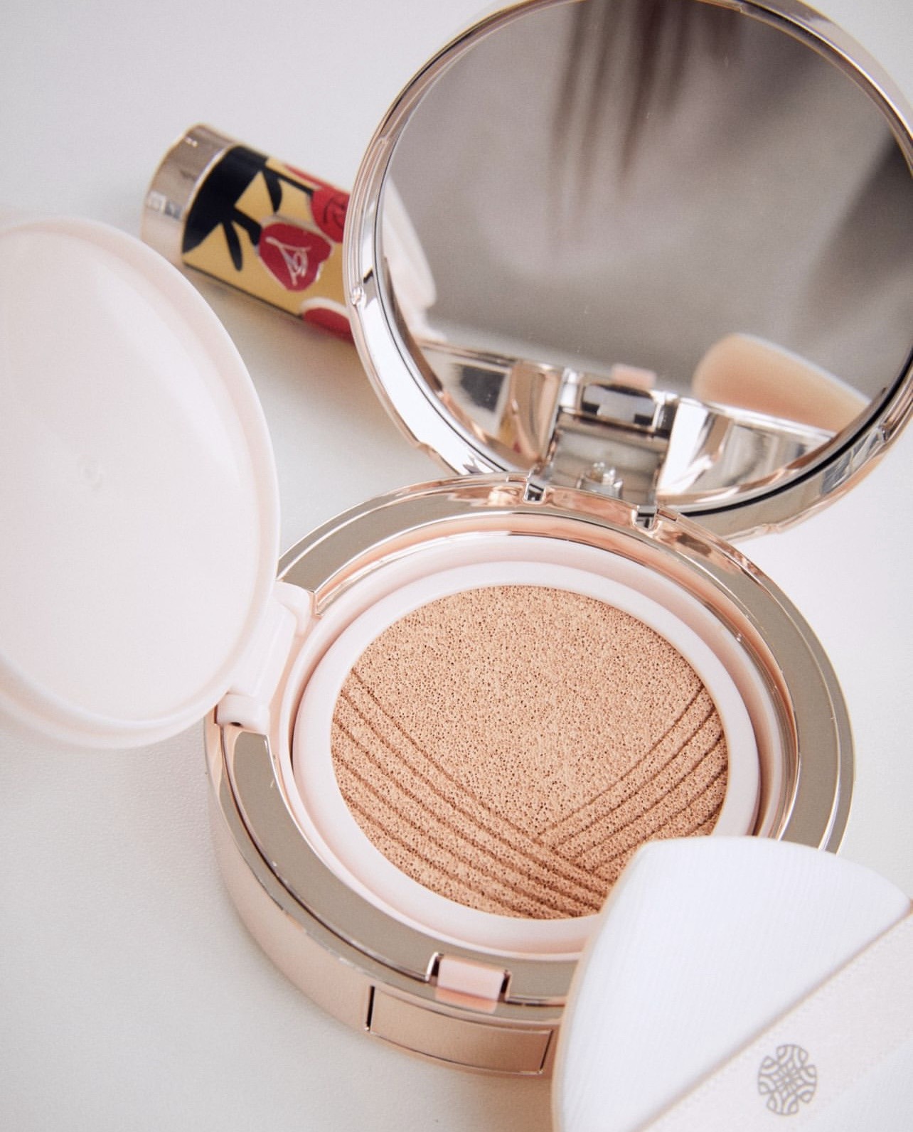 – Mạng lưới các hạt phấn liên kết chặt chẽ giúp nâng đỡ đường nét gương mặt, cho lớp nền căng mịn tươi trẻ