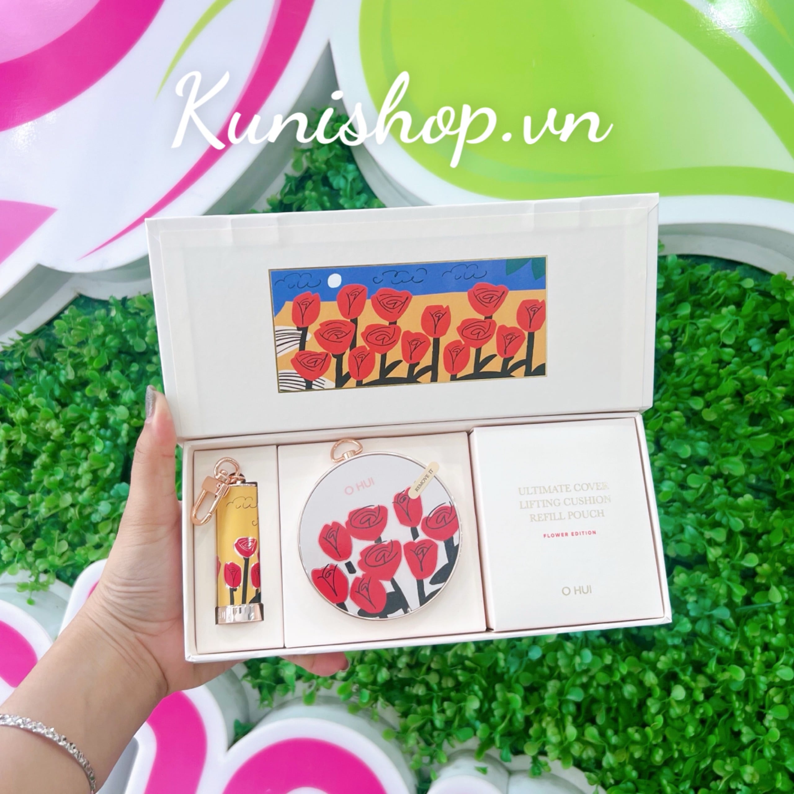 Được hợp tác giữa 𝑶𝒉𝒖𝒊 và 𝑯𝒂𝒘𝒂𝒊𝒊𝒂𝒏𝒔𝒂𝒍𝒂𝒅 với họa tiết minh họa hoa hồng màu sắc rực rỡ bắt mắt gợi nhớ đến sự tươi sáng năng động của mùa hè và mang đến tâm trạng tươi vui phấn khởi mỗi khi mở hộp phấn trang điểm.