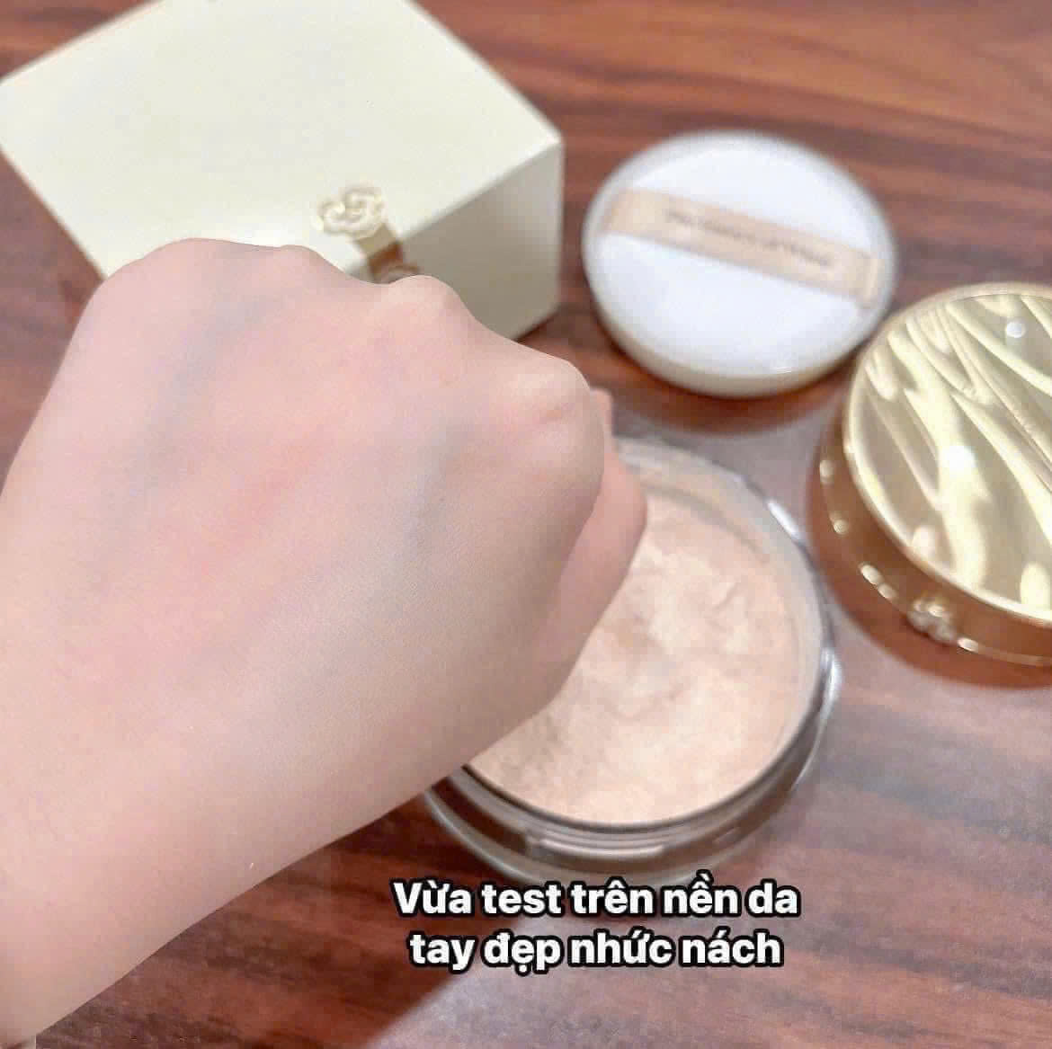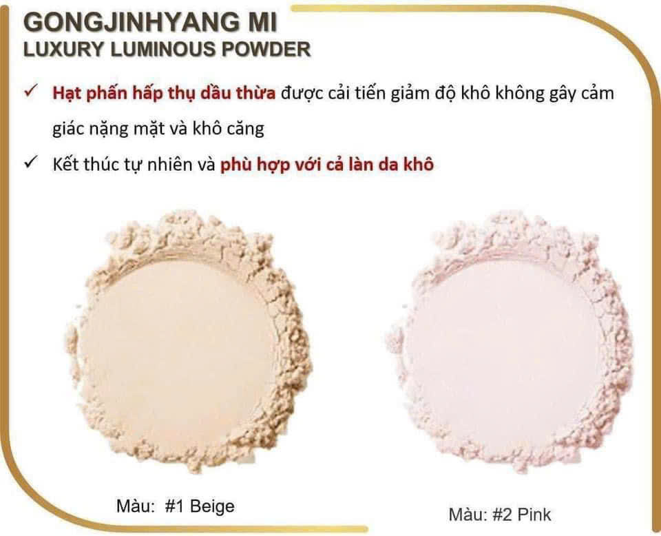 Phấn phủ trang điểm hoàng cung với thành phần bảo vật hoàng cung như ngọc trai, hổ phách, bột vàng nguyên chất với kích cỡ cực nhỏ và độ tinh khiết cao giúp che phủ hoàn hảo các khuyết điểm trên da, dàn trải đều màu, hiệu chỉnh sắc da, cho làn da trong suốt tự nhiên với ánh sáng rực rỡ.
