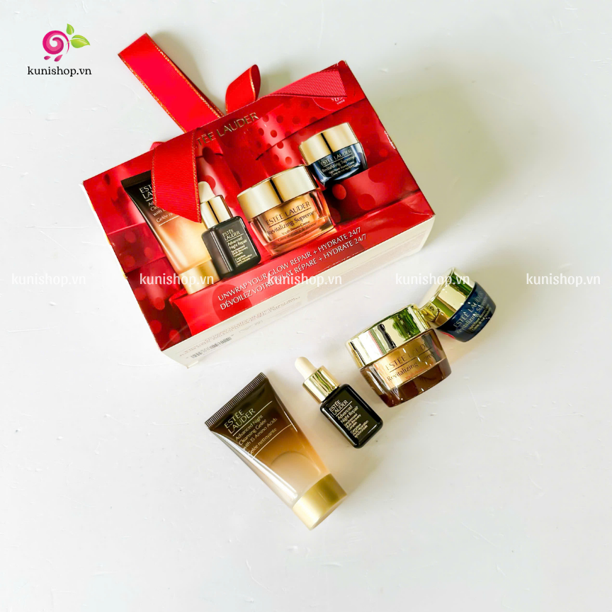 Sét Estée Lauder Unwrap Your Glow Repair + Hydrate 24/7 là bộ sản phẩm lý tưởng cho việc chăm sóc da, giúp bạn phục hồi và cấp ẩm cho làn da của mình. Không chỉ mang lại vẻ đẹp tự nhiên, đây còn là quyết định hoàn hảo cho những ai yêu thích sản phẩm chăm sóc da từ thương hiệu nổi tiếng Estee Lauder.