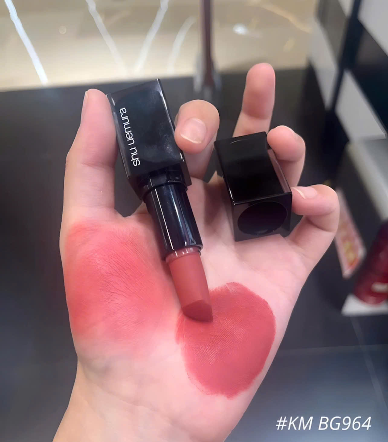 Shu uemura rouge unlimited kinu satin là dòng son thỏi trang điểm cao cấp đến từ thương hiệu mỹ phẩm Shu Uemura của Nhật Bản. Chất son quyến rũ mềm mượt như lụa và kết cấu nhẹ như lông vũ với khả năng lên màu chuẩn xác, mang lại cảm giác êm ái và dễ chịu trên môi, hứa hẹn sẽ bùng nổ trong năm nay.