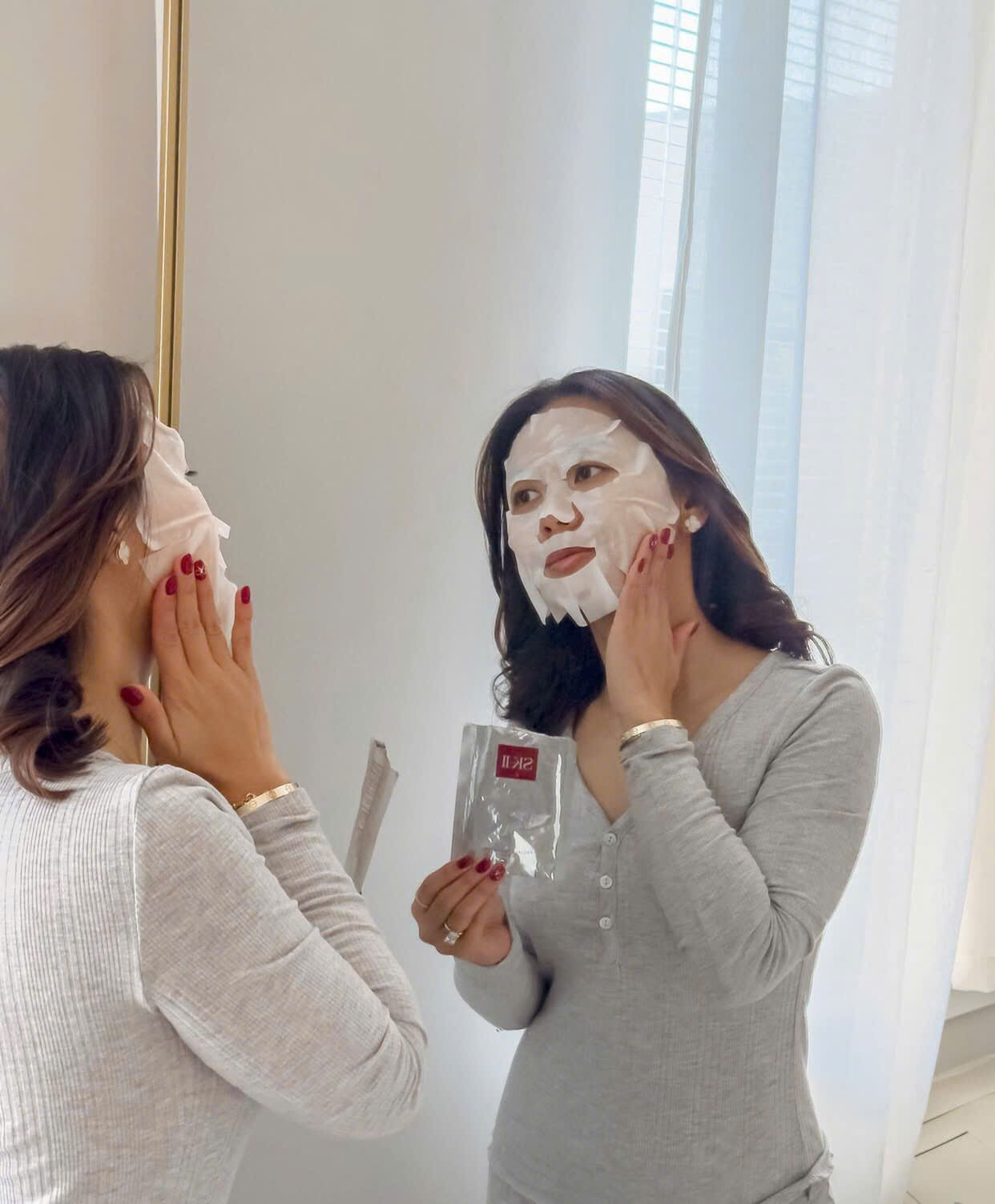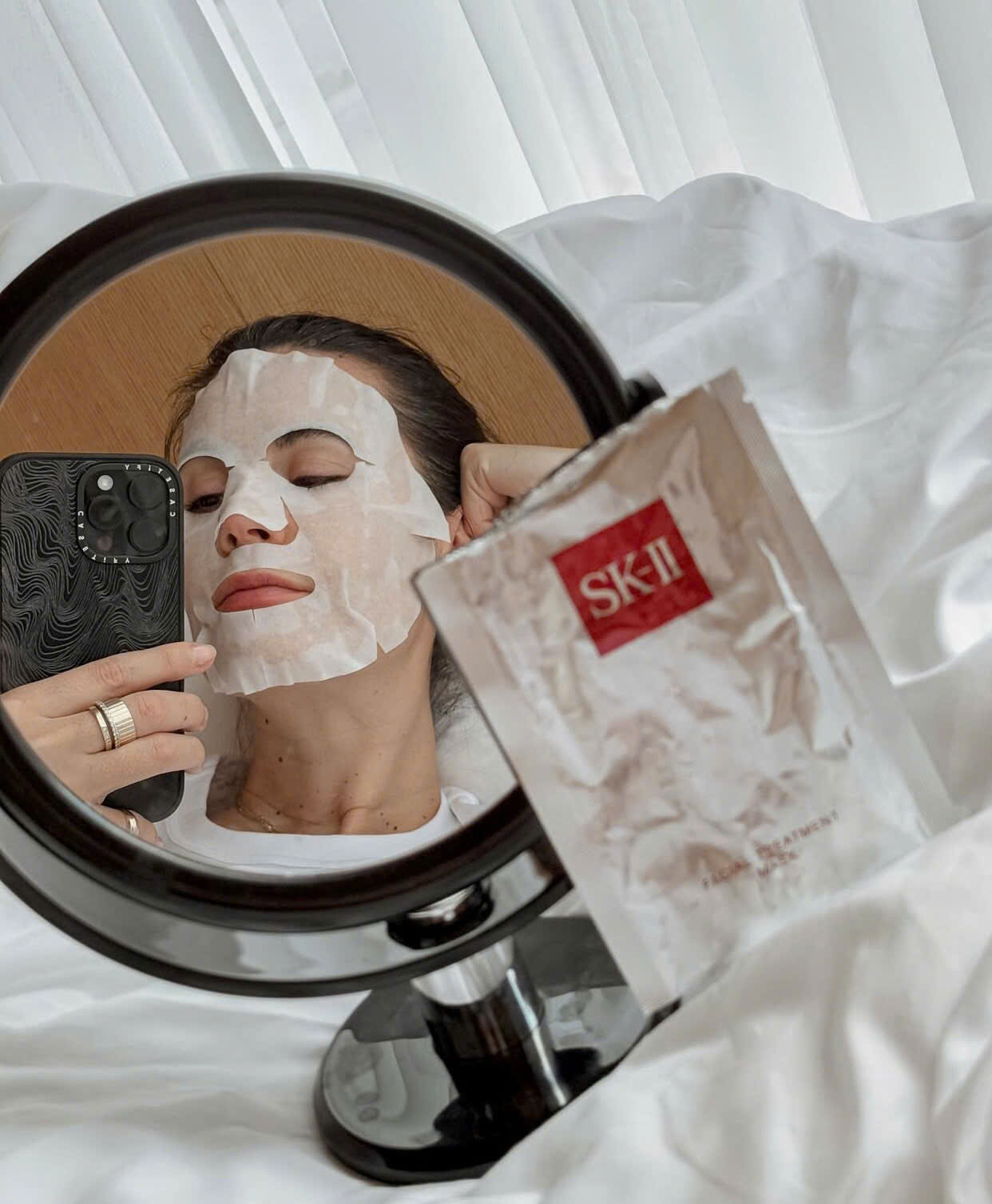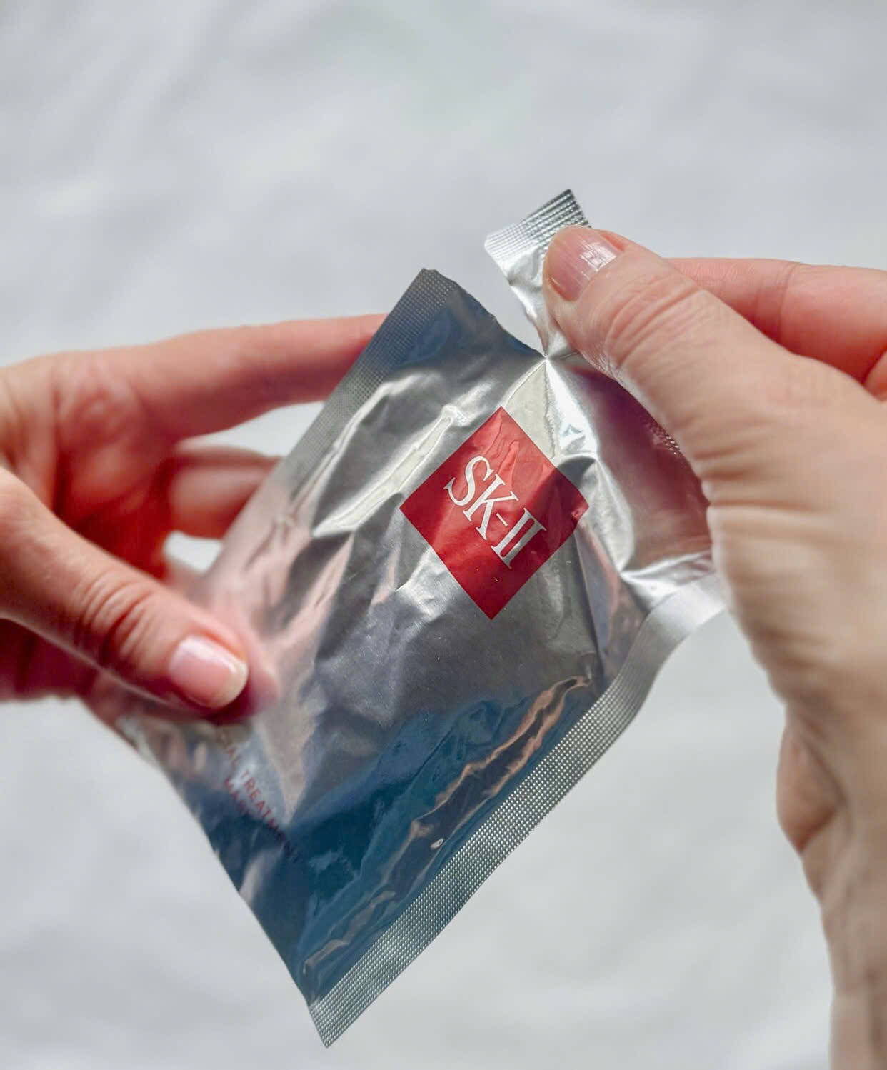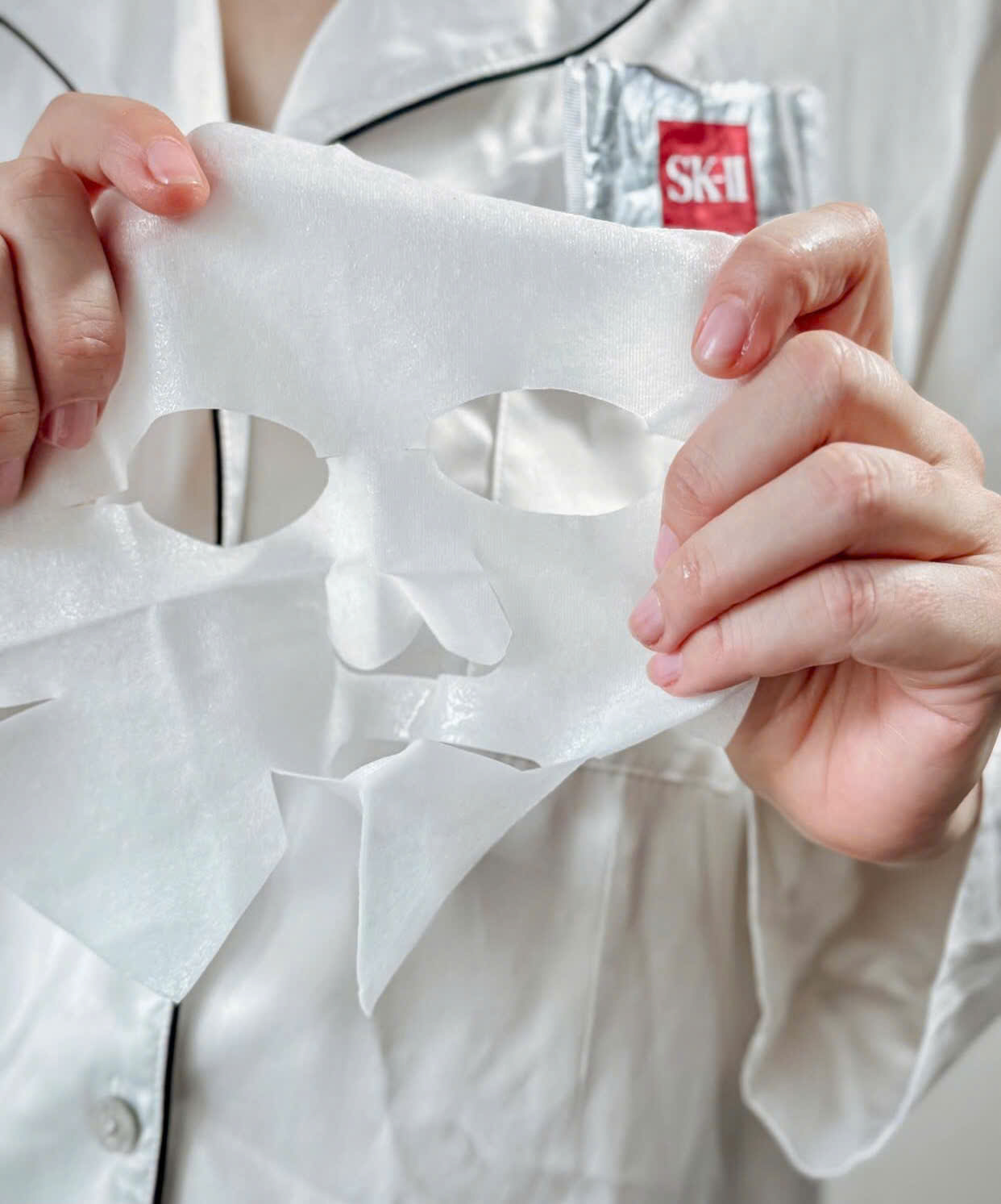 Mặt nạ SK-II rất dày dặn và thấm đẫm tinh chất Pitera nên bạn có thể đắp thư giãn 20-30p cho tinh chất thấm hết vào da.