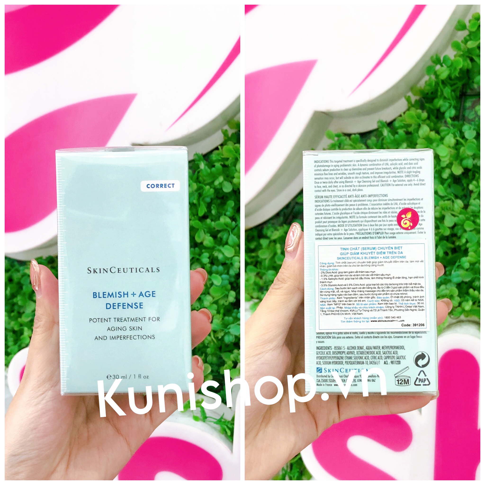 Một loại serum mặt không chứa dầu giúp giảm sự hình thành mụn trứng cá ở tuổi trưởng thành và cải thiện các dấu hiệu lão hóa có thể nhìn thấy được . Blemish & Age Defense cung cấp một lựa chọn thanh lịch và hiệu quả cho những bệnh nhân trưởng thành, những người vẫn bị mụn trứng cá. Nó không chỉ giải quyết mụn trứng cá của họ, nó đồng thời làm giảm dầu, thông thoáng lỗ chân lông, làm sáng màu da, cải thiện nếp nhăn và cấu trúc da. Loại serum nhẹ này kết hợp hài hòa với các sản phẩm SkinCeuticals khác mà bệnh nhân đang sử dụng để ngăn ngừa các dấu hiệu lão hóa.