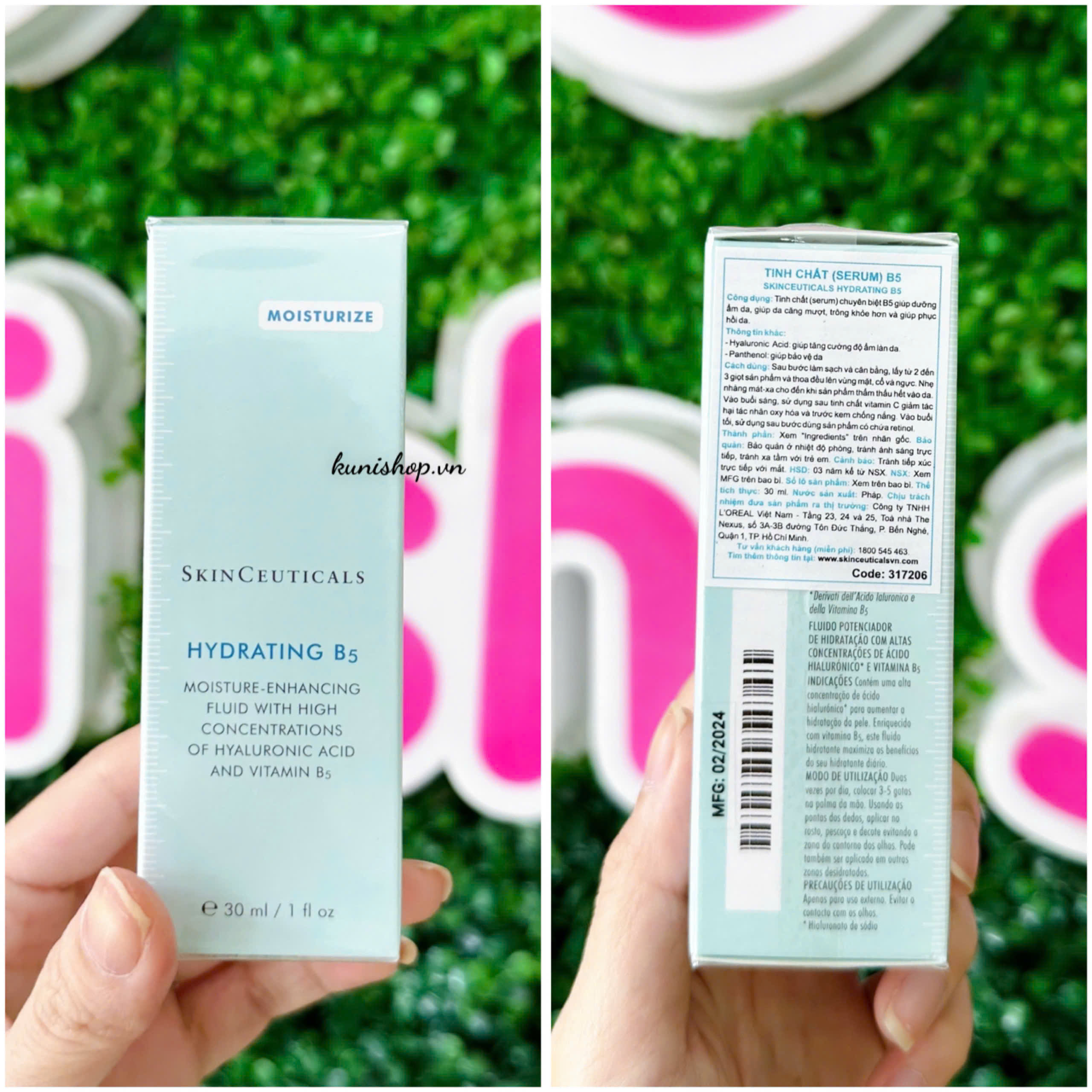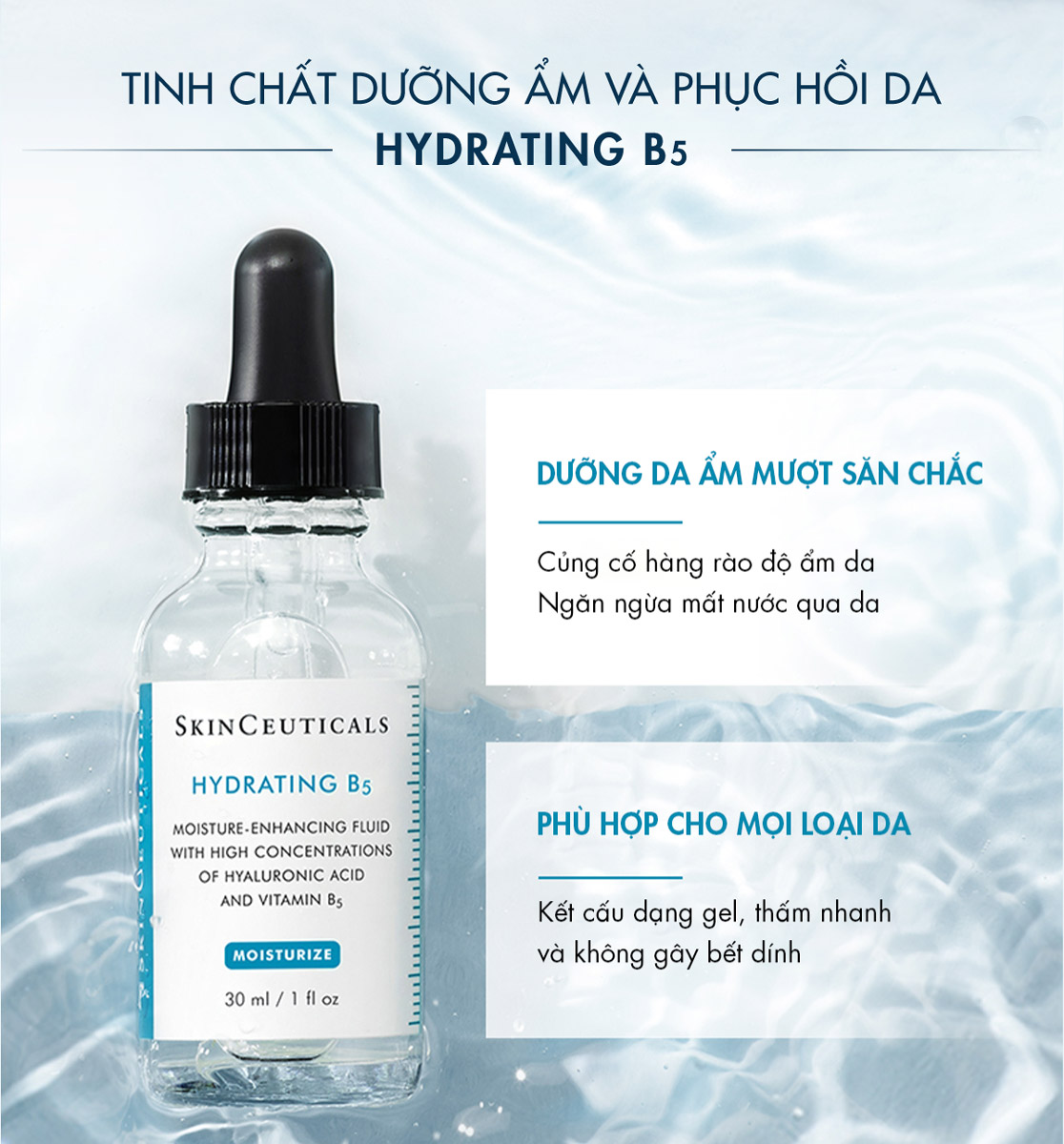 SkinCeuticals Hydrating B5 Fluid giúp cấp ẩm cho da, phục hồi da sau tổn thương do mụn hoặc các liệu trình điều trị. Sản phẩm không chứa dầu nên có thể dùng hằng ngày mà không gây bí da.