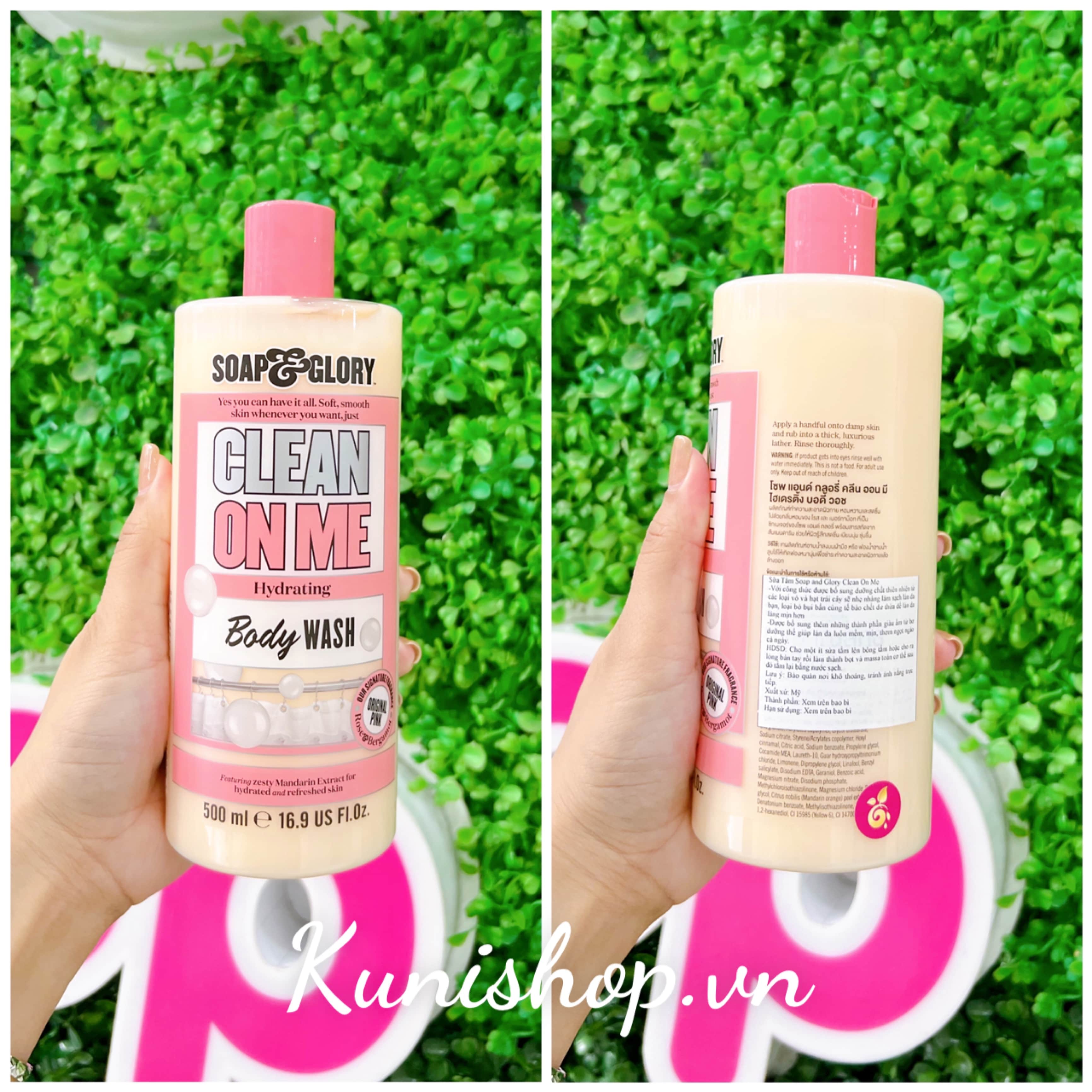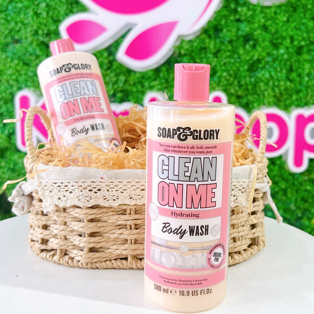 - Clean On Me - sữa tắm làm sạch cùng dưỡng ẩm phảng phất hương quýt và hương thơm hoa quả cổ điển ORIGINAL PINK ™ tuyệt vời của Soap & Glory. Clean On Me có thêm những thành phần giàu ẩm từ bơ dưỡng thể The Righteous Butter – “bơ dưỡng thể tốt nhất nước Anh” để Clean On Me không chỉ được các cô gái nhớ đến khi muốn tìm một loại sữa tắm làm “sạch da” mà còn là sữa tắm mang đến một làn da mềm, mịn. Hương thơm nước hoa “sexy” rất ngọt và tràn đầy nữ tính sẽ khiến bạn yêu thương và nâng niu hơn chính “cơ thể” mình.