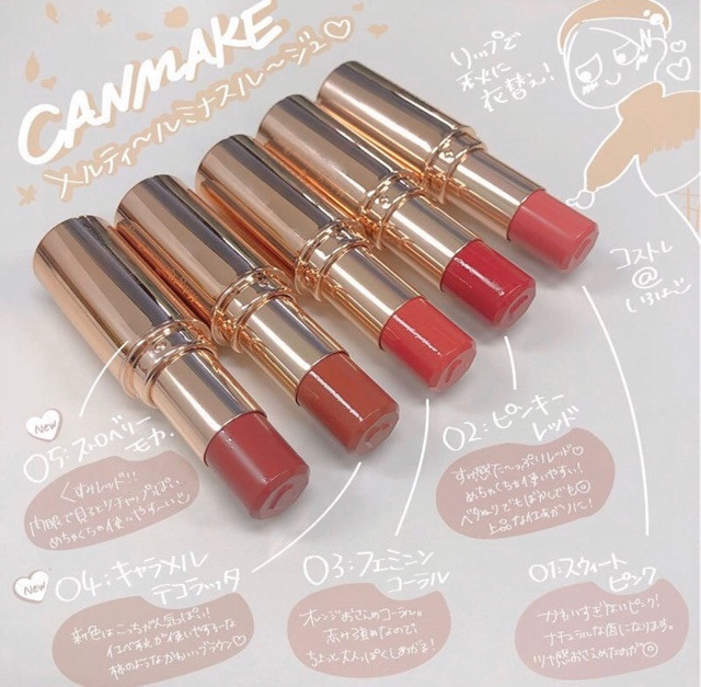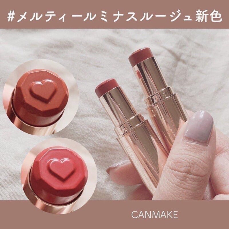 Canmake Melteal Minus một loại son mới với chất son cấp ẩm và mịn như nhung, Được điều chế với một chất nền mà điểm tan chảy gần với nhiệt độ cơ thể,nên son như tan ngay vào môi khi bạn vừa đánh lên môi.