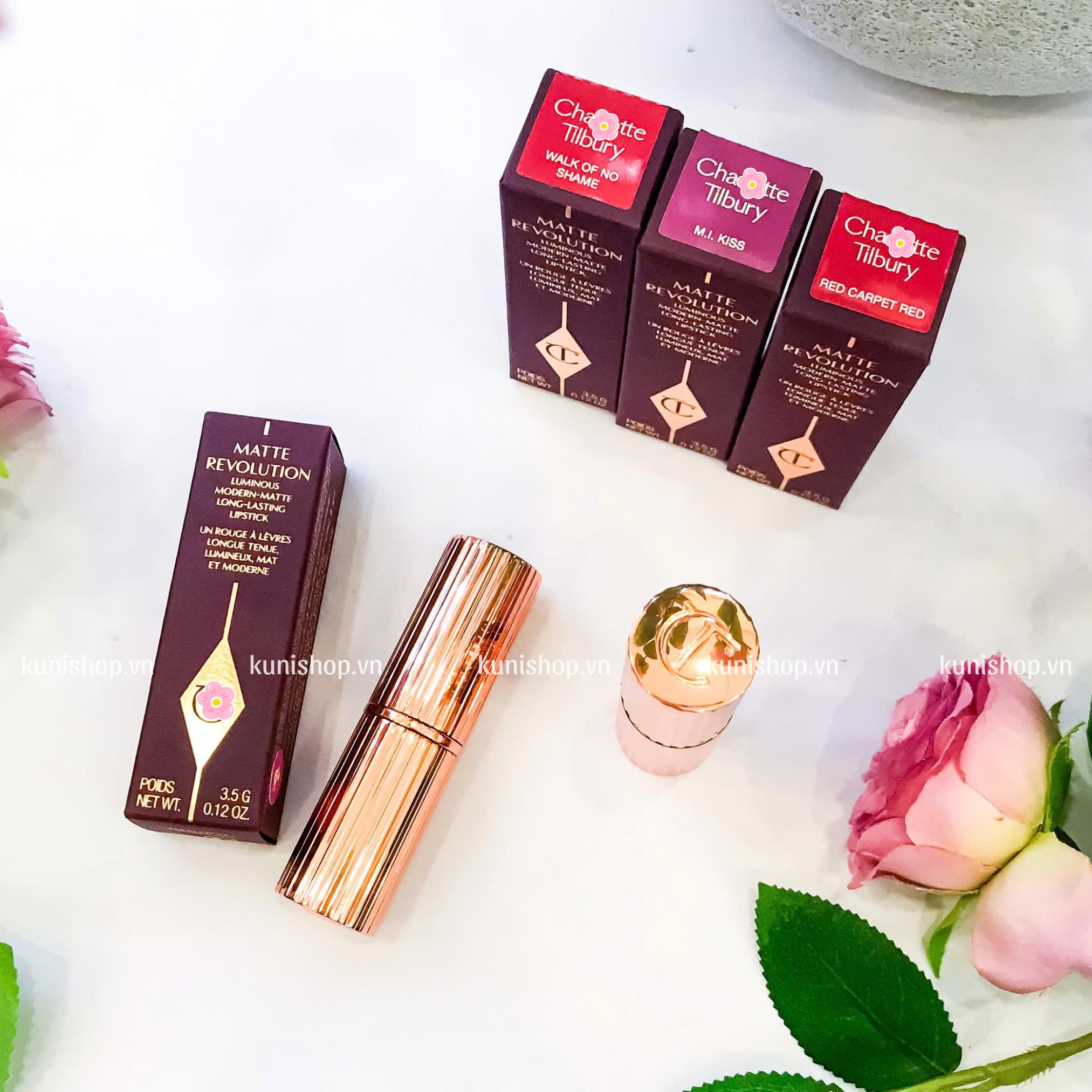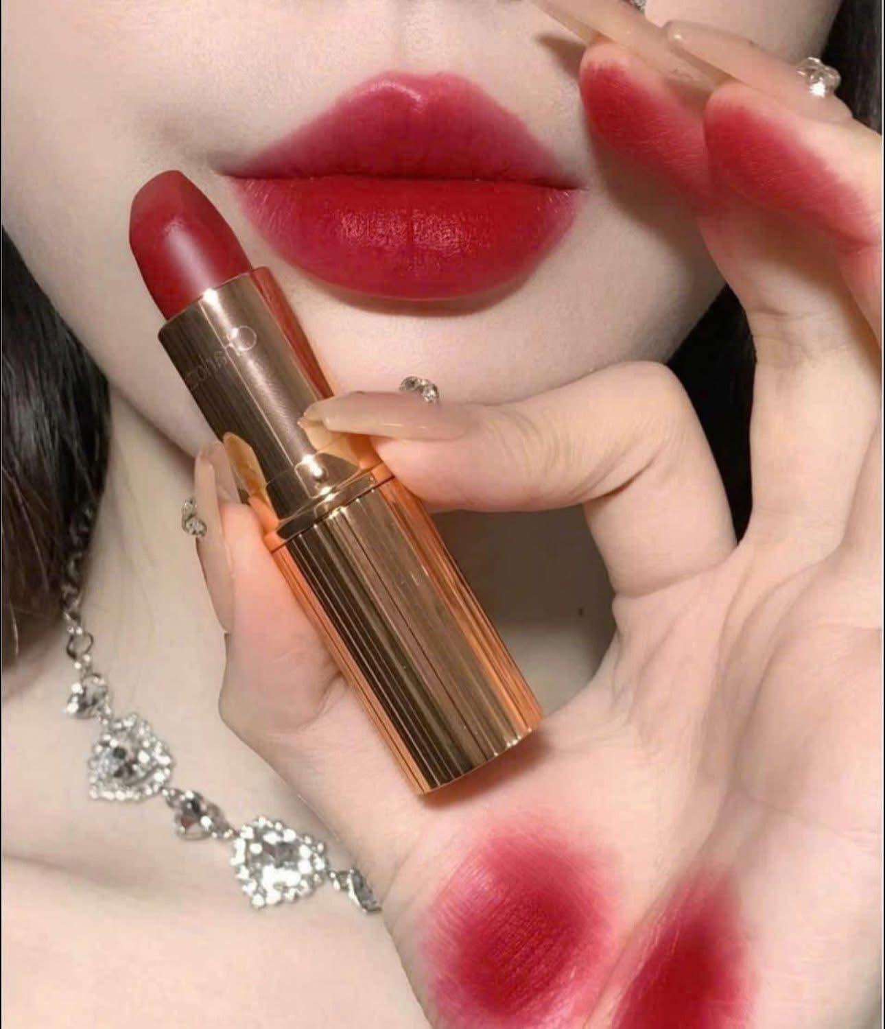 Nói về chất Son Thỏi Charlotte Tilbury Matte Revolution. Em ý thuộc dòng son lì mà không khô, có độ lì mà vẫn giữ được độ mướt, chất son “mềm mướt ví von như nhung” được cảm nhận rõ khi lướt nhẹ trên môi. Công thức pha trộn đặc biệt các loại sáp đảm bảo giữ được độ lì nhưng không bị gợn bột và khô môi.