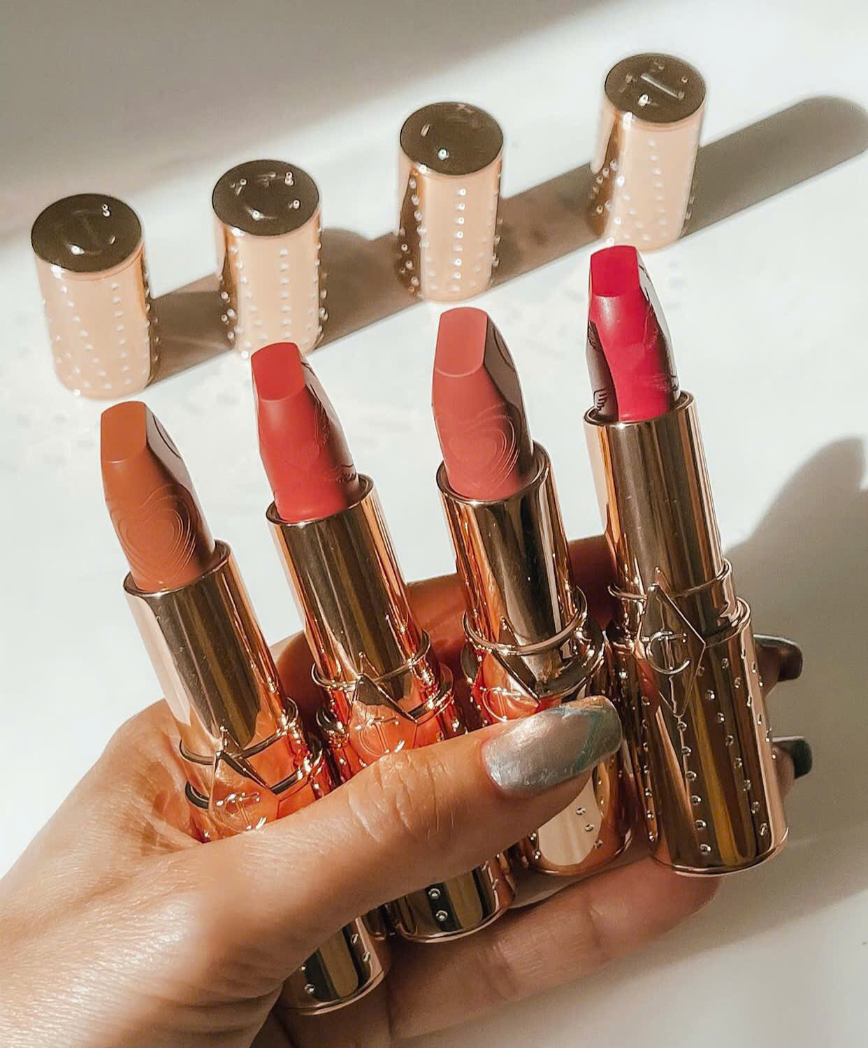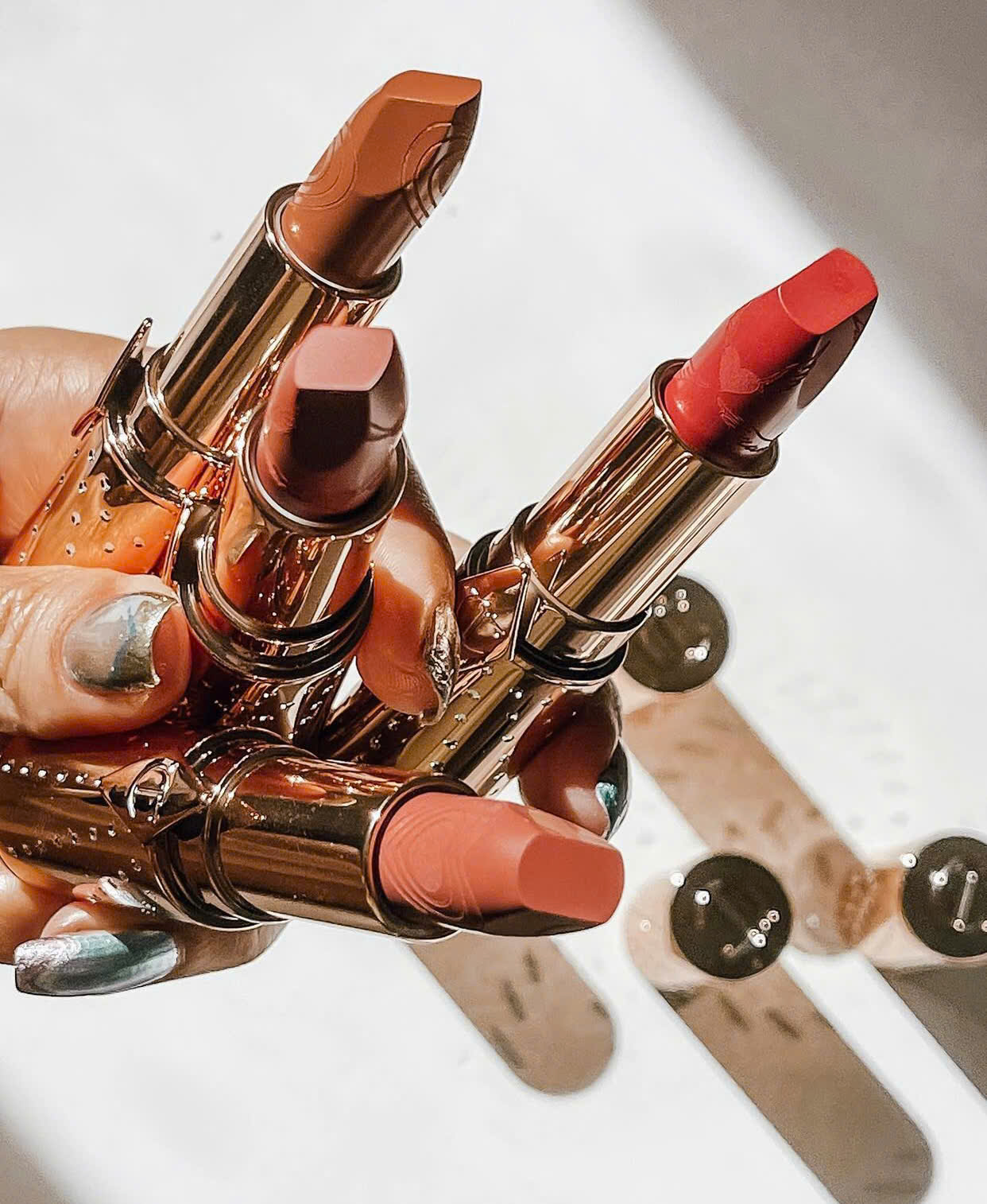 Charlotte Tilbury luôn chinh phục phái đẹp bằng những thiết kế mang đậm hơi thở điện ảnh. Thỏi son được chế tác nhỏ gọn, tiện lợi cho việc mang theo bên mình, nhưng vẫn giữ nguyên tinh thần sang trọng với lớp vỏ đỏ đầy nổi bật. Các đường vân sọc tinh xảo chạy dọc thân son tạo hiệu ứng lấp lánh, thu hút ngay từ ánh nhìn đầu. Kích thước mini không chỉ phù hợp cho những chuyến đi xa mà còn giúp nàng dễ dàng trải nghiệm nhiều sắc son khác nhau trong bộ sưu tập. Bên trong, đầu son vát chéo truyền thống giúp thao tác thoa son trở nên chính xác, tôn lên đường nét mềm mại của đôi môi. Mỗi chi tiết đều được trau chuốt, mang đến cảm giác như một món phụ kiện thời trang cao cấp hơn là một thỏi son thông thường.