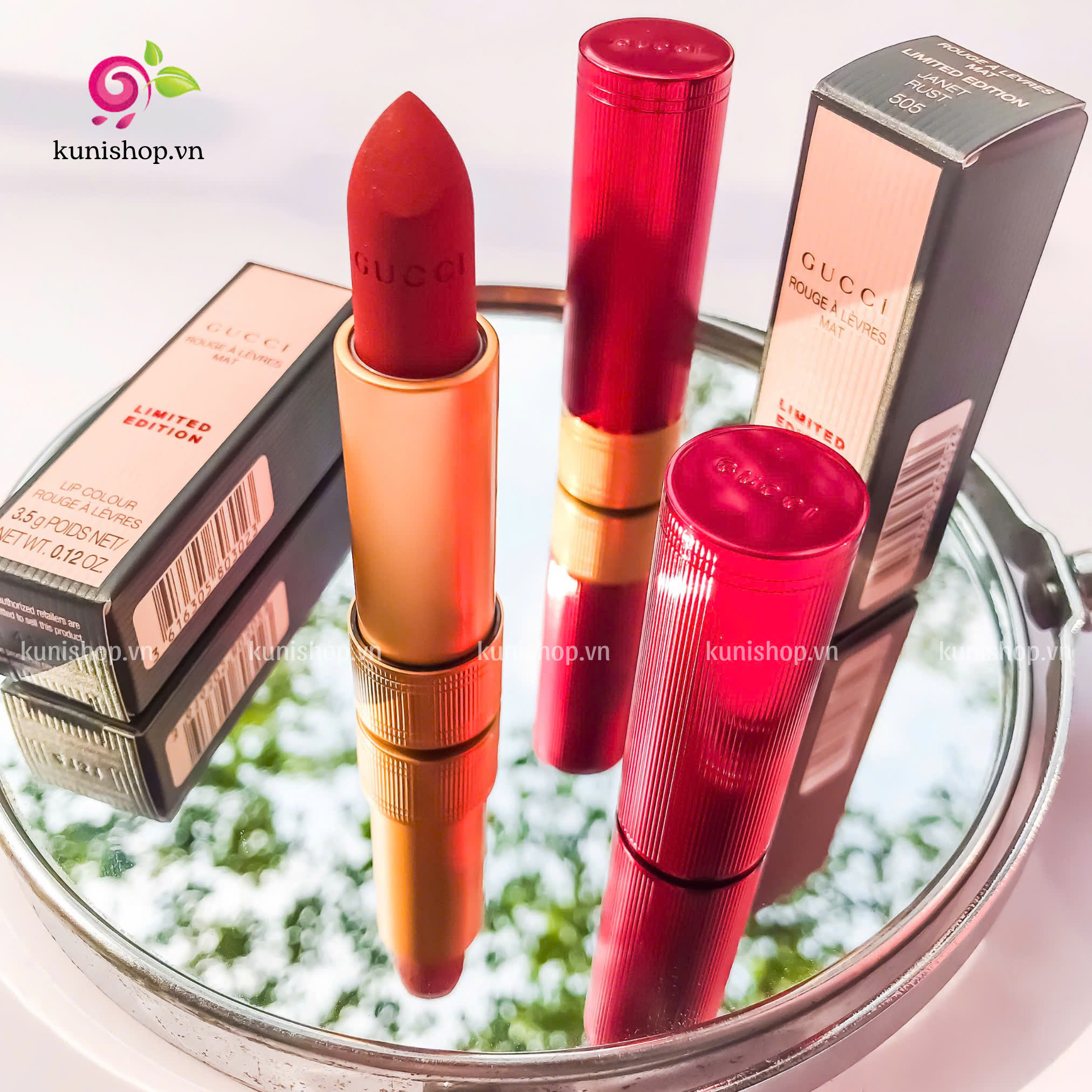 Gucci Rouge À Lèvres Mat Limited Edition Lip _ 505 Janet Rust với công thức dưỡng ẩm chứa hỗn hợp các sắc tố và sáp gel mang lại lớp nền nhẹ, mang hương thơm ngọt ngào của hoa violet và hương trái cây mềm mại. Chất son siêu mịn lì, mềm mượt giúp che được các khuyết điểm của môi.