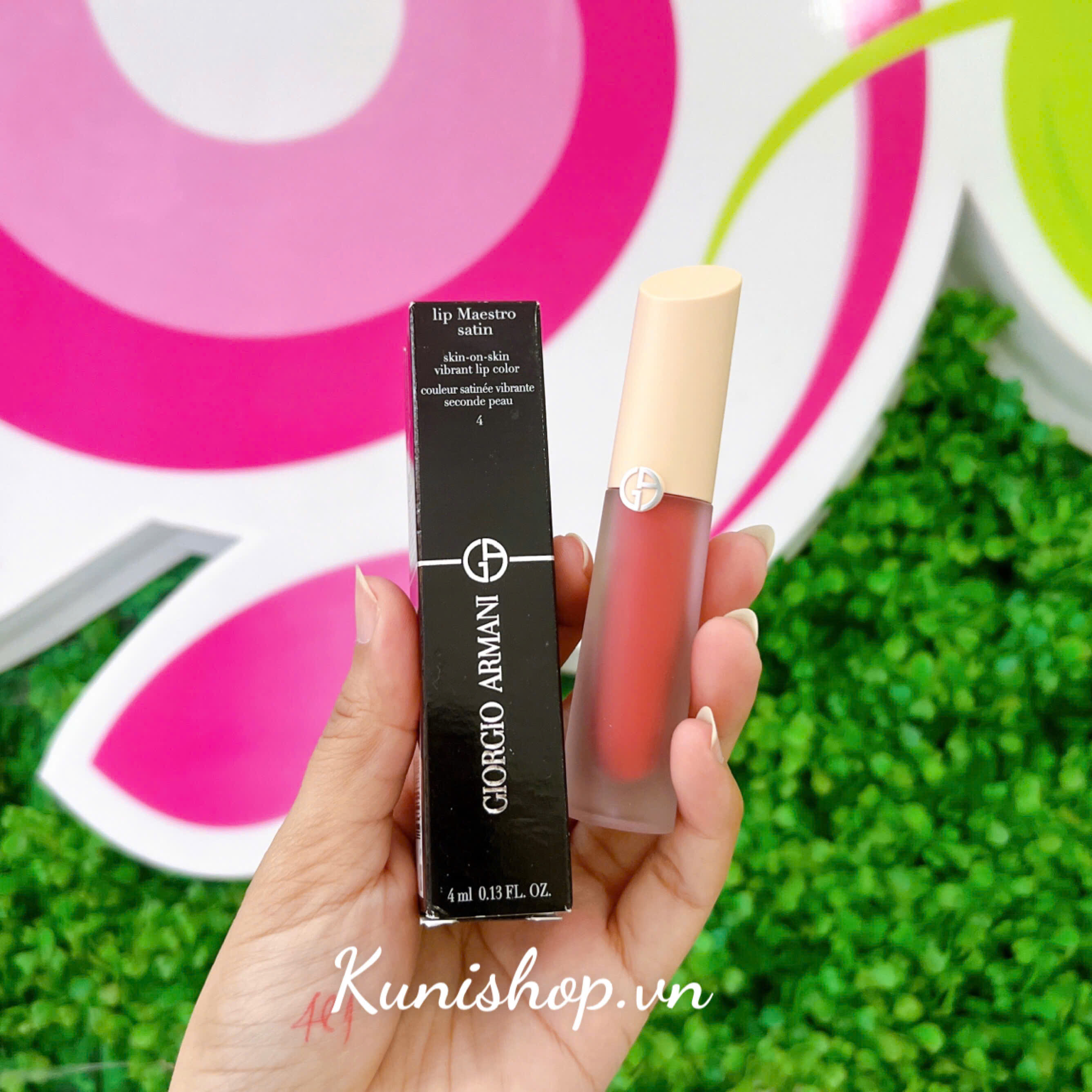 Son Kem Giorgio Armani Lip Maestro Satin là dòng son kem nhưng chất rất nhẹ, lên môi mềm, hơi bóng ban đầu để giữ ẩm cho môi và tránh tình trạng khô bết son. Sau đó mới tiệp và lì dần. Set chặt trên môi đúng chuẩn. Quan trọng nhất là son không bị nặng môi, và cũng không gây khô môi hay đọng vân môi.