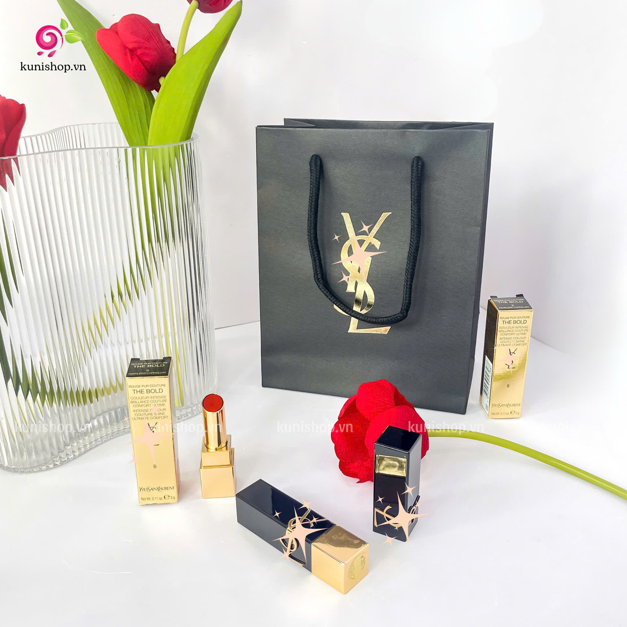 YSL lại tung một son mới nhất- hot hit nhất thuộc BST YSL Rouge Couture The Bold vừa ra mắt năm 2022. Son chứa nhiều tinh dầu dưỡng, không chỉ giúp đôi môi của bạn xinh đẹp bên ngoài mà còn mềm mịn, hồng hào từ tận bên trong. Bạn có thể tự tin sử dụng em ấy mọi lúc mọi nơi. Với những màu hot hit nhất: