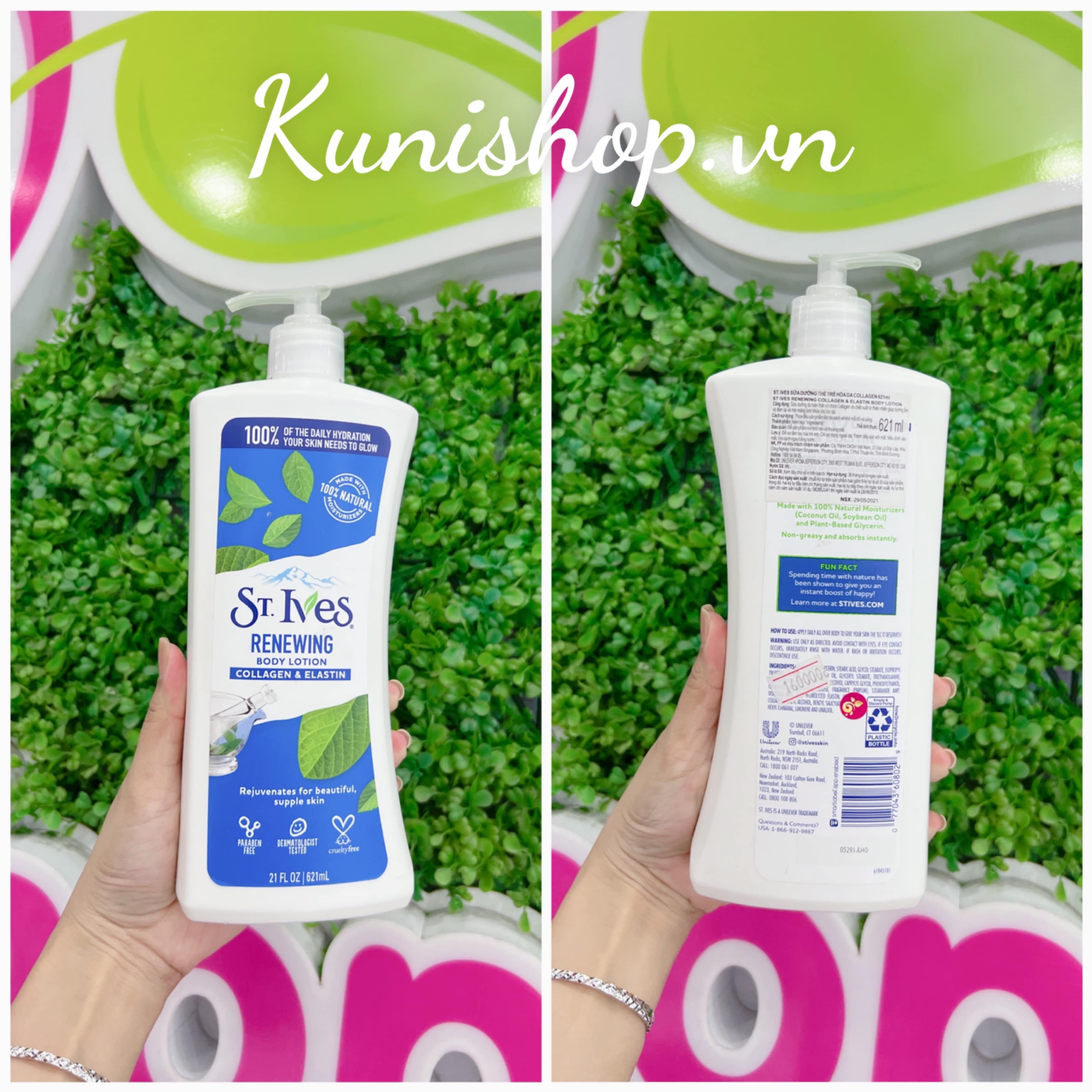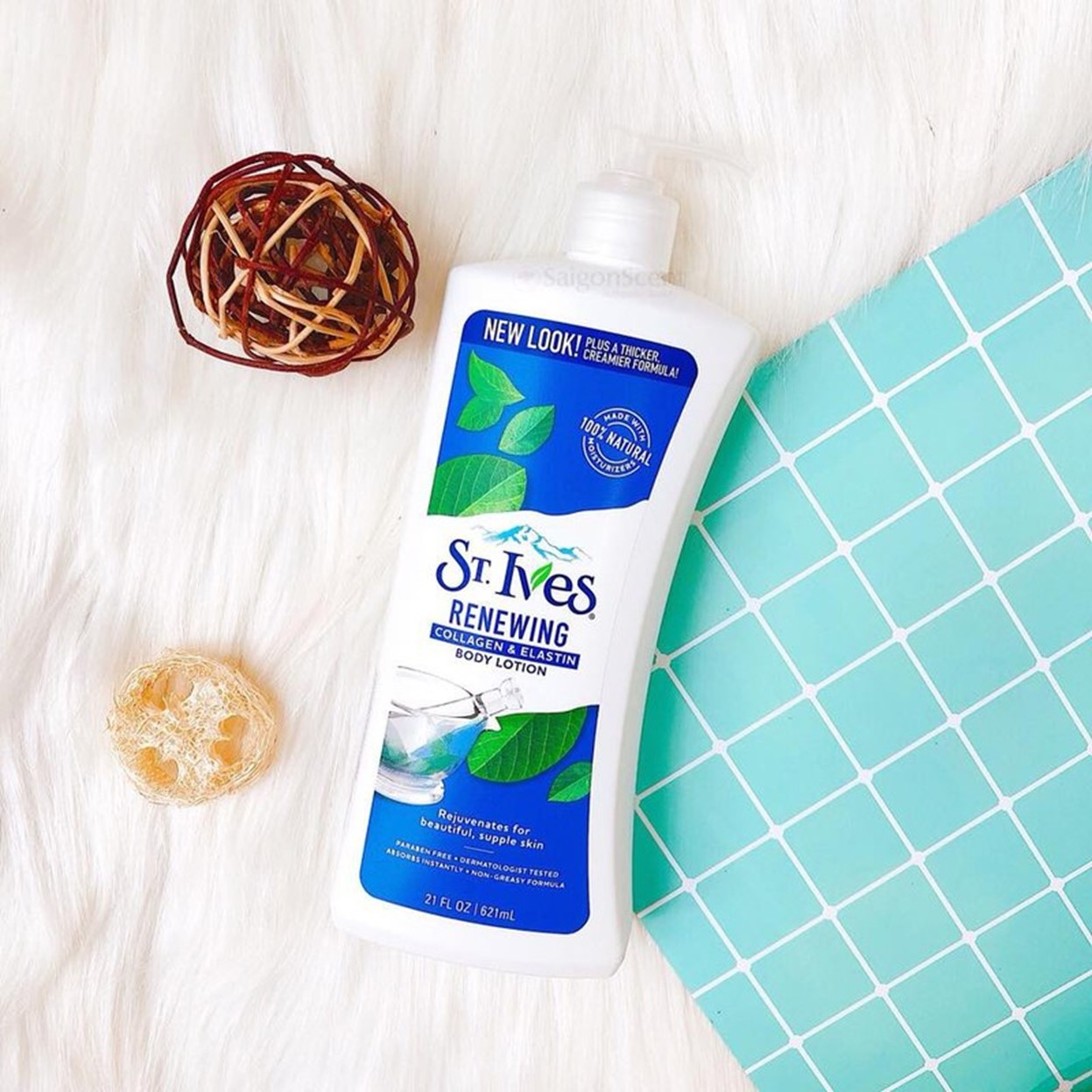 - St.Ives Skin Renewing Body Lotion Collagen Elastin đã được kiểm nghiệm lâm sàn về hiệu quả phục hồi và trẻ hóa làn da. Sản phẩm an toàn cho da, không gây kích ứng và phù hợp với cả da nhạy cảm. Một làn da căng tràn sức sống phản phất hương thơn nhẹ nhàng sẽ làm bạn lưu luyến không thôi.